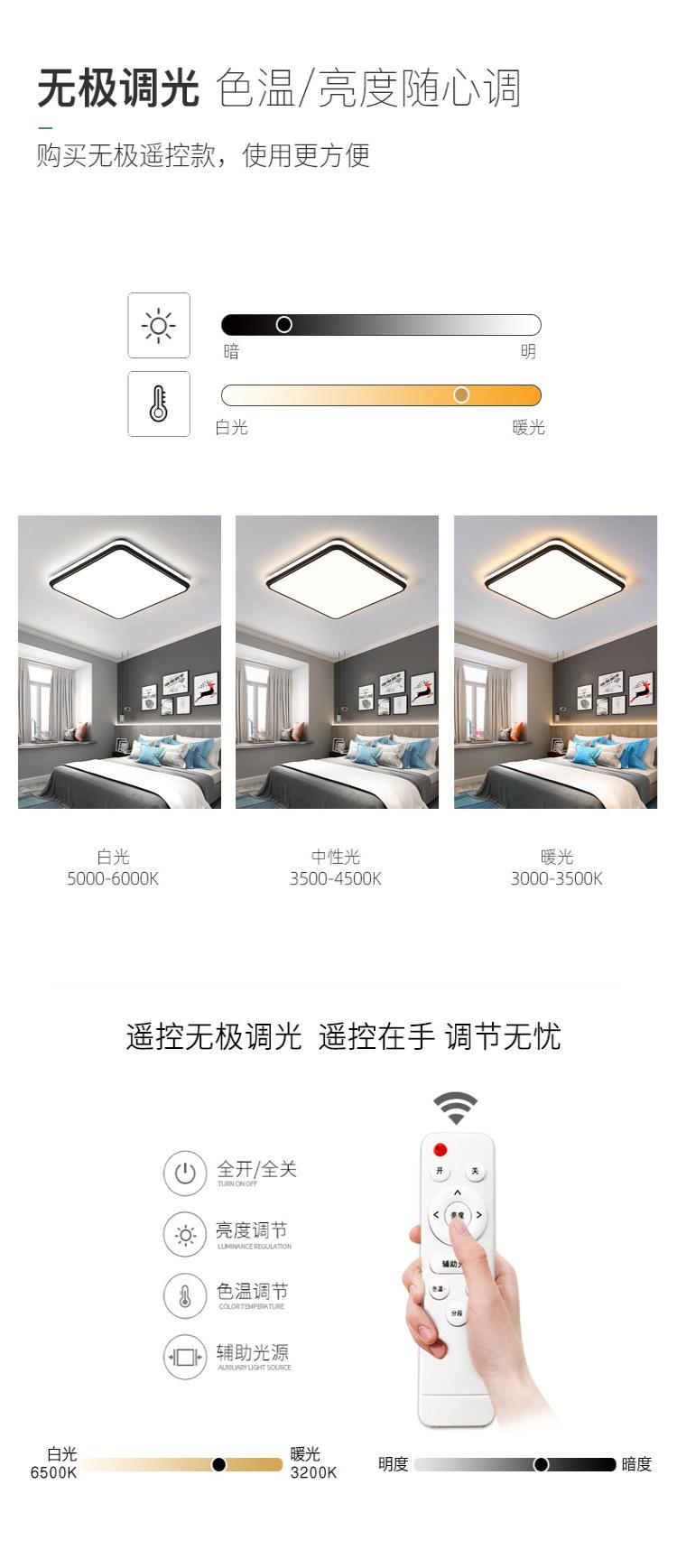 LED bright white light, LED three-color dimming, LED stepless dimming + remote control