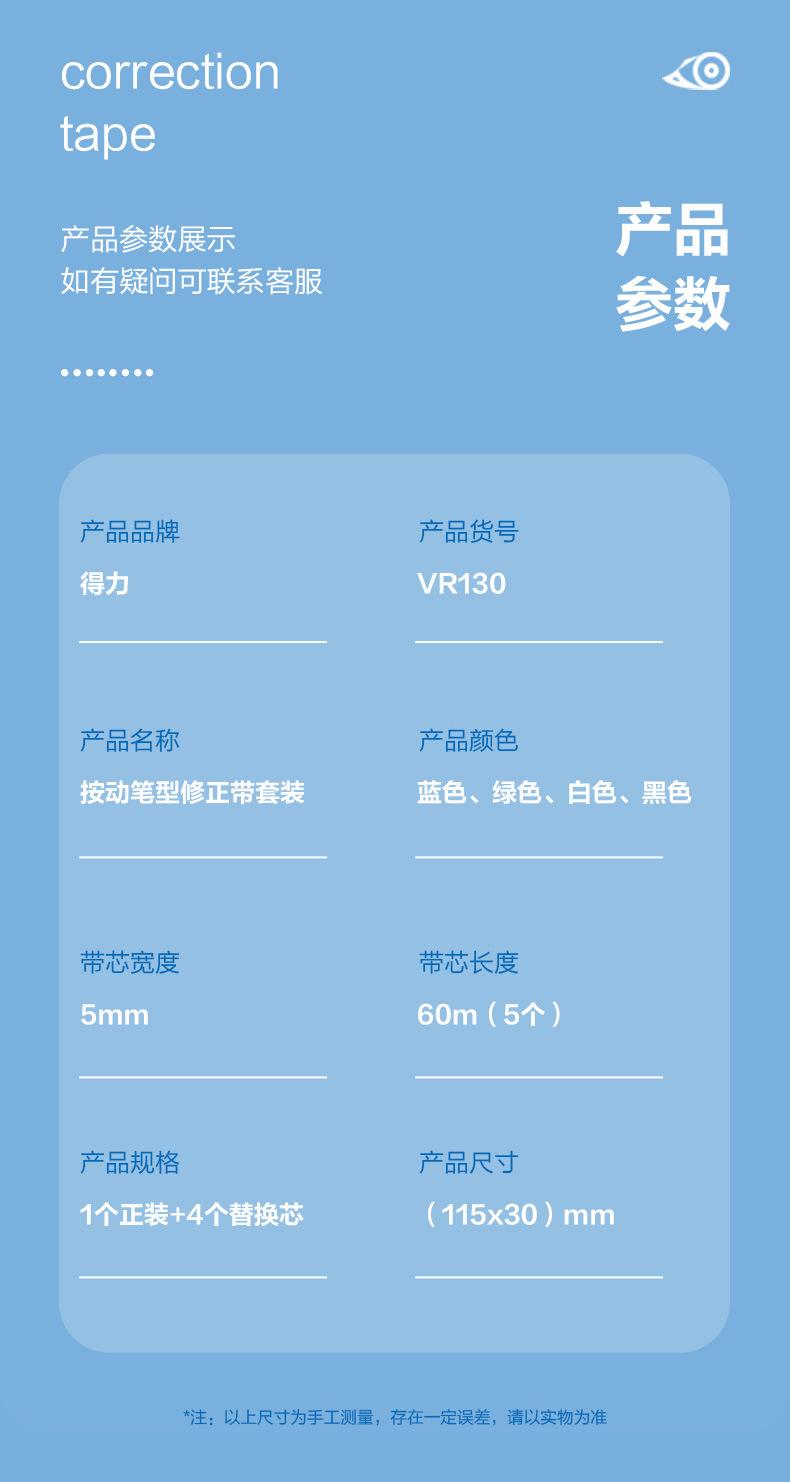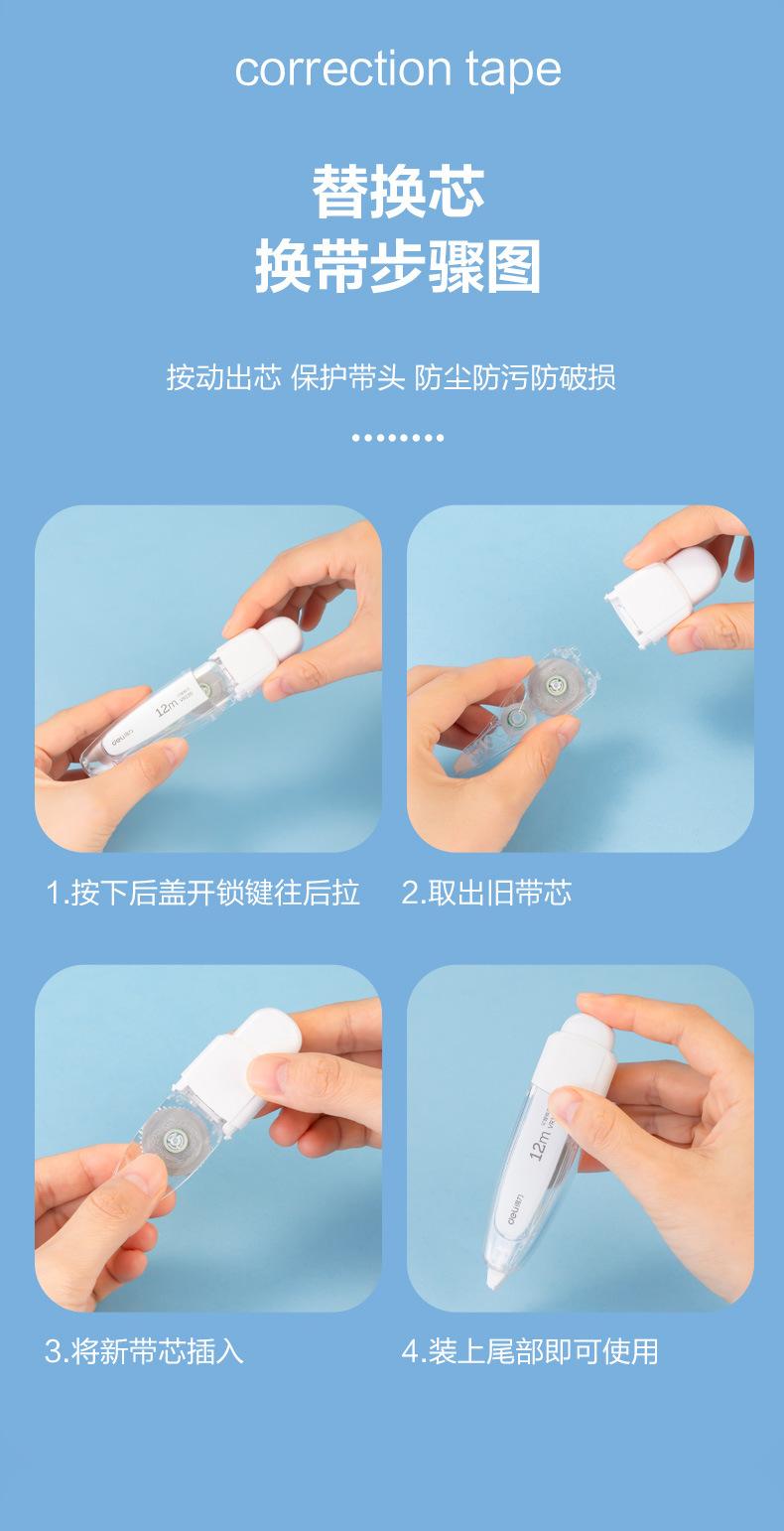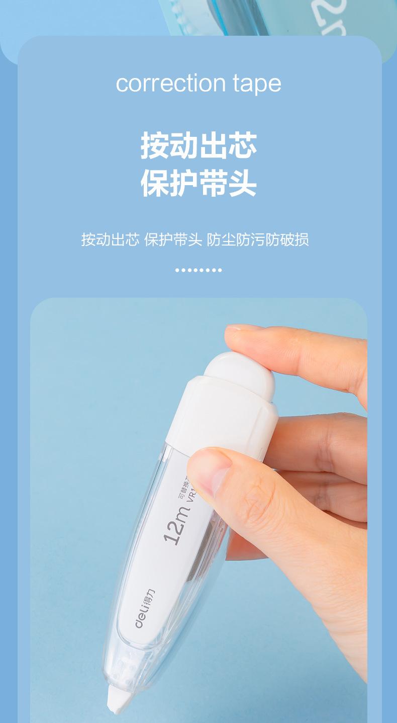Deli VR130 corrector en cinta tipo bolígrafo traje cinta correctora de núcleo reemplazable papelería para estudiantes de secundaria cinta correctora
