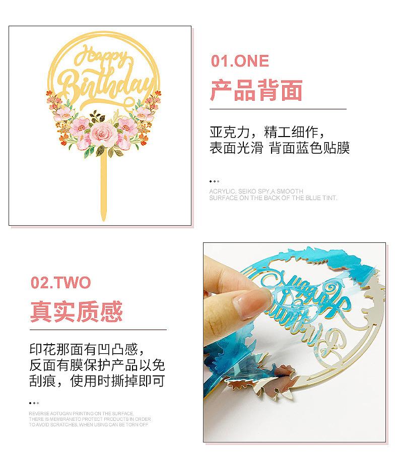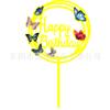 Tarjeta de feliz cumpleaños con diseño de mariposa y complemento de acrílico dorado para tarta