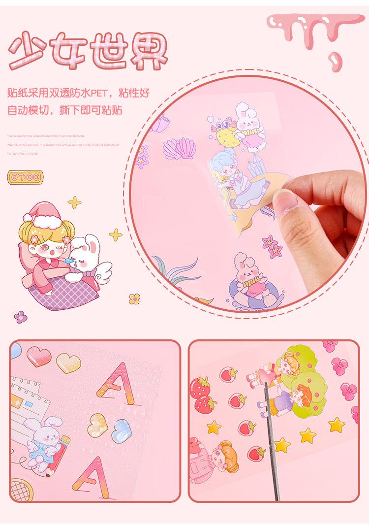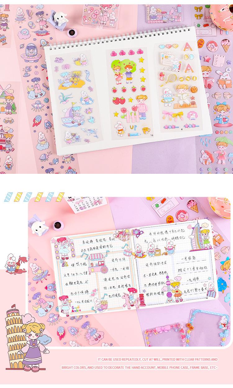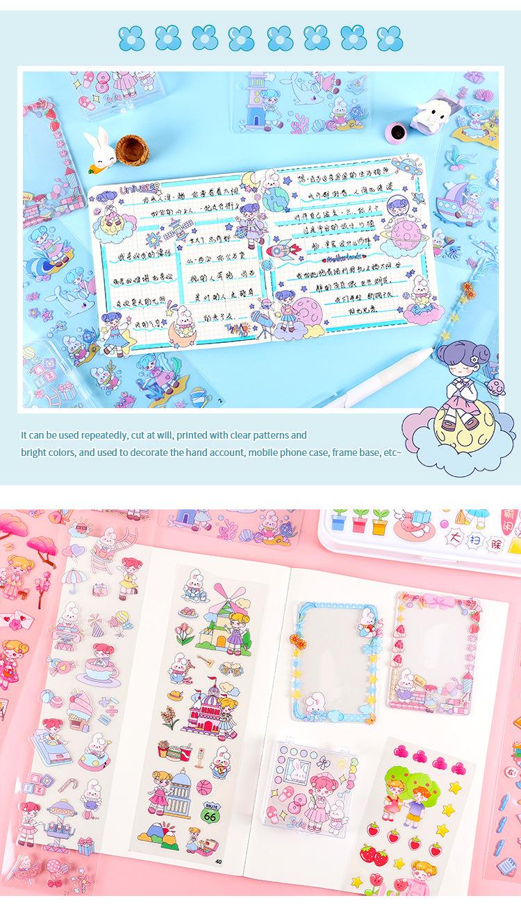Pegatina de cuenta de mano de tarjeta Goo larga Daquan Libro de cuenta de mano Lindo dibujo animado Decorativo Patrón grande Mascota Transparente Pegatina impermeable