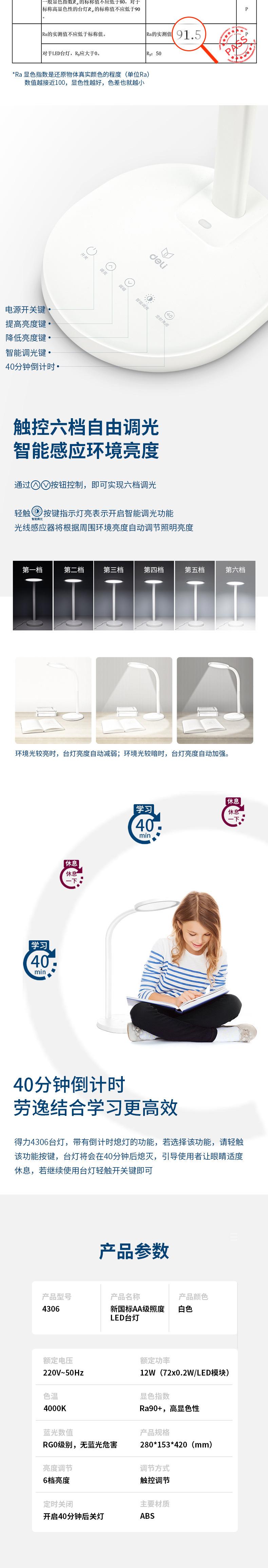 Lámpara de Escritorio Táctil Deli 4306Led Lámpara de Escritorio Plegable 6 Niveles de Temperatura de Color Ajustable Lámpara de Protección Ocular sin Pantalla Venta al por Mayor