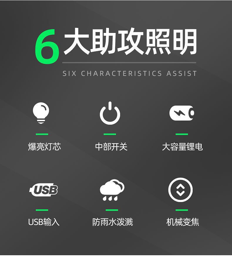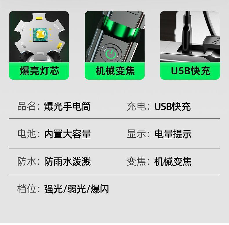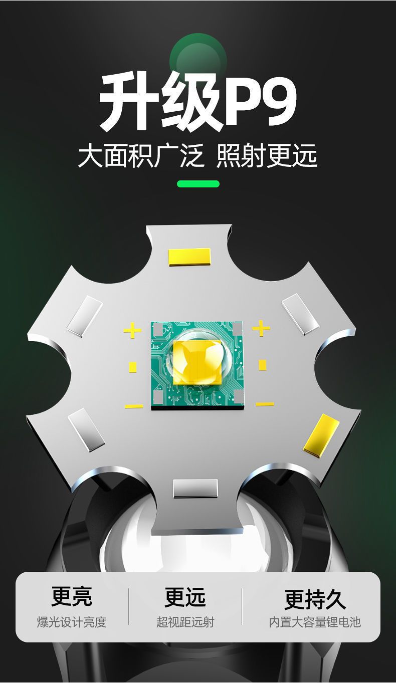 Linterna LED transfronteriza, recargable, de largo alcance, portátil, ultrabrillante, para uso doméstico y exterior.
