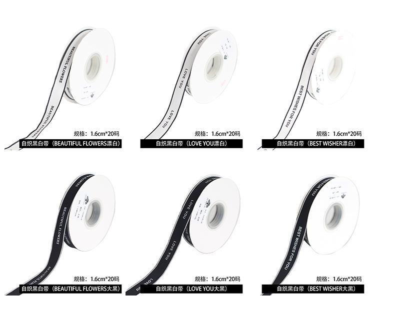 Ramo de cinta en blanco y negro para regalo, cinta inglesa, floristería, bricolaje, material hecho a mano, regalo, embalaje de flores, cinta floral