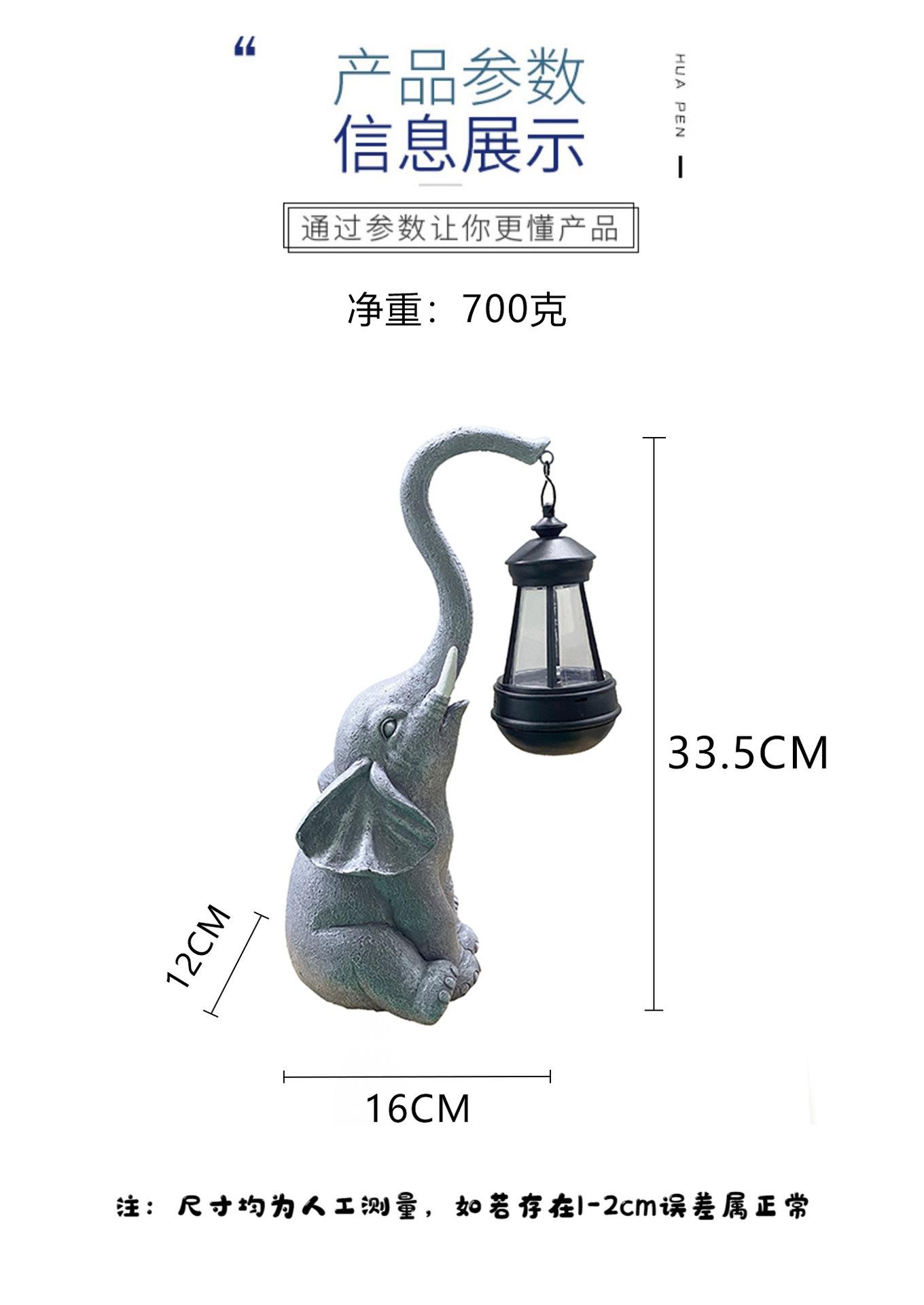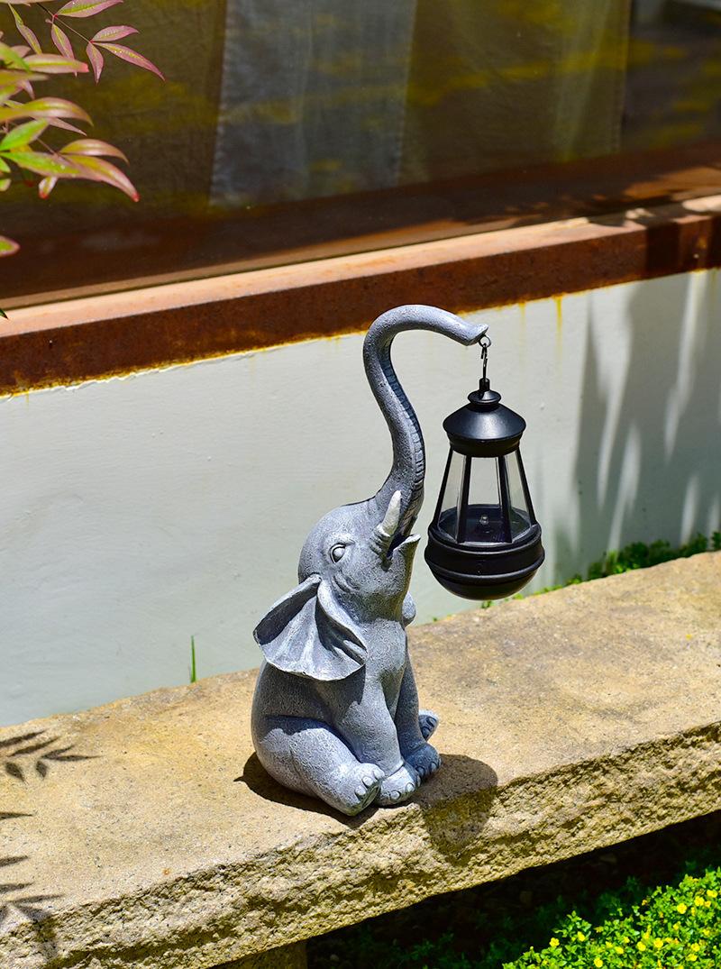 2024 Estatua de Elefante Luz Luz Solar de Jardín Exterior Adornos de Animales de Simulación Jardín Patio Artesanías de Resina