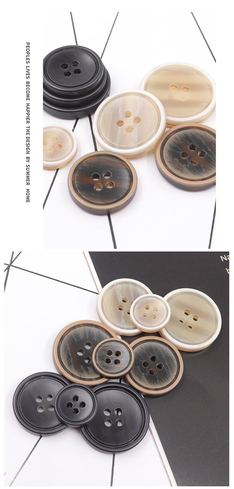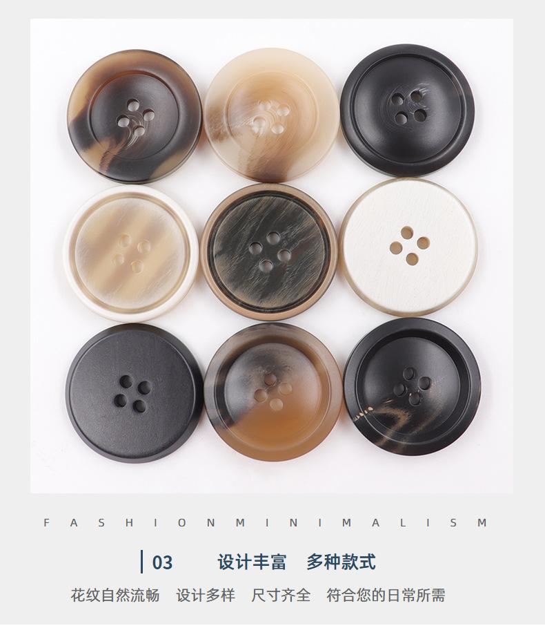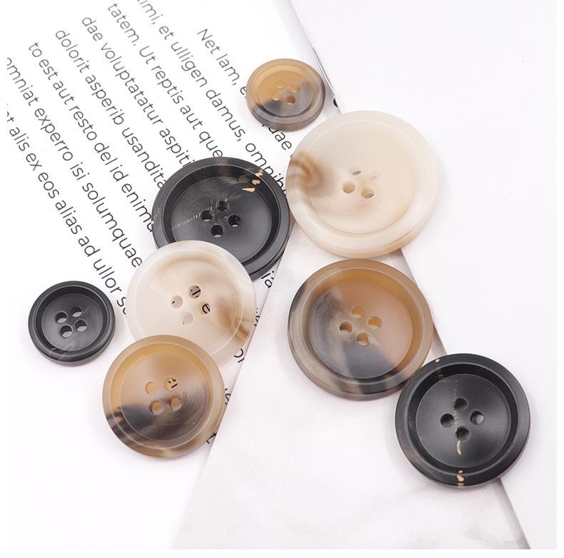 Venta al por mayor, disponible, hoja de flores de palo, artesanía de resina, patrón de resina, botón de cuatro ojales, suéter cortavientos, botón de abrigo de lana