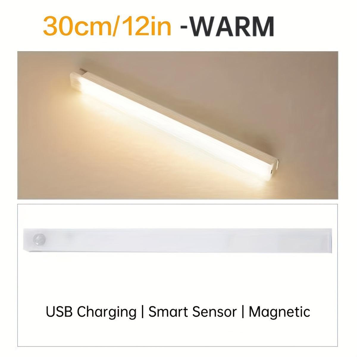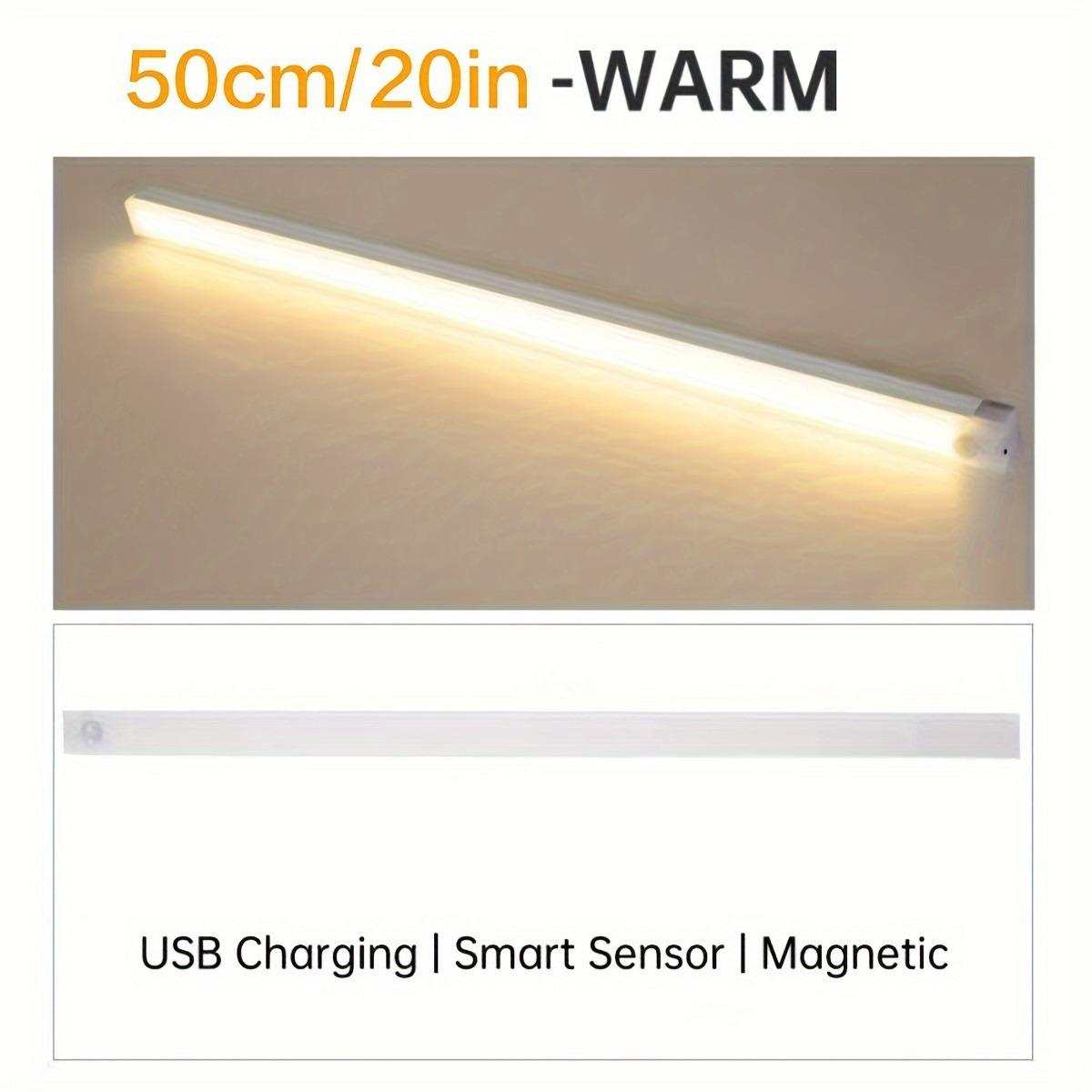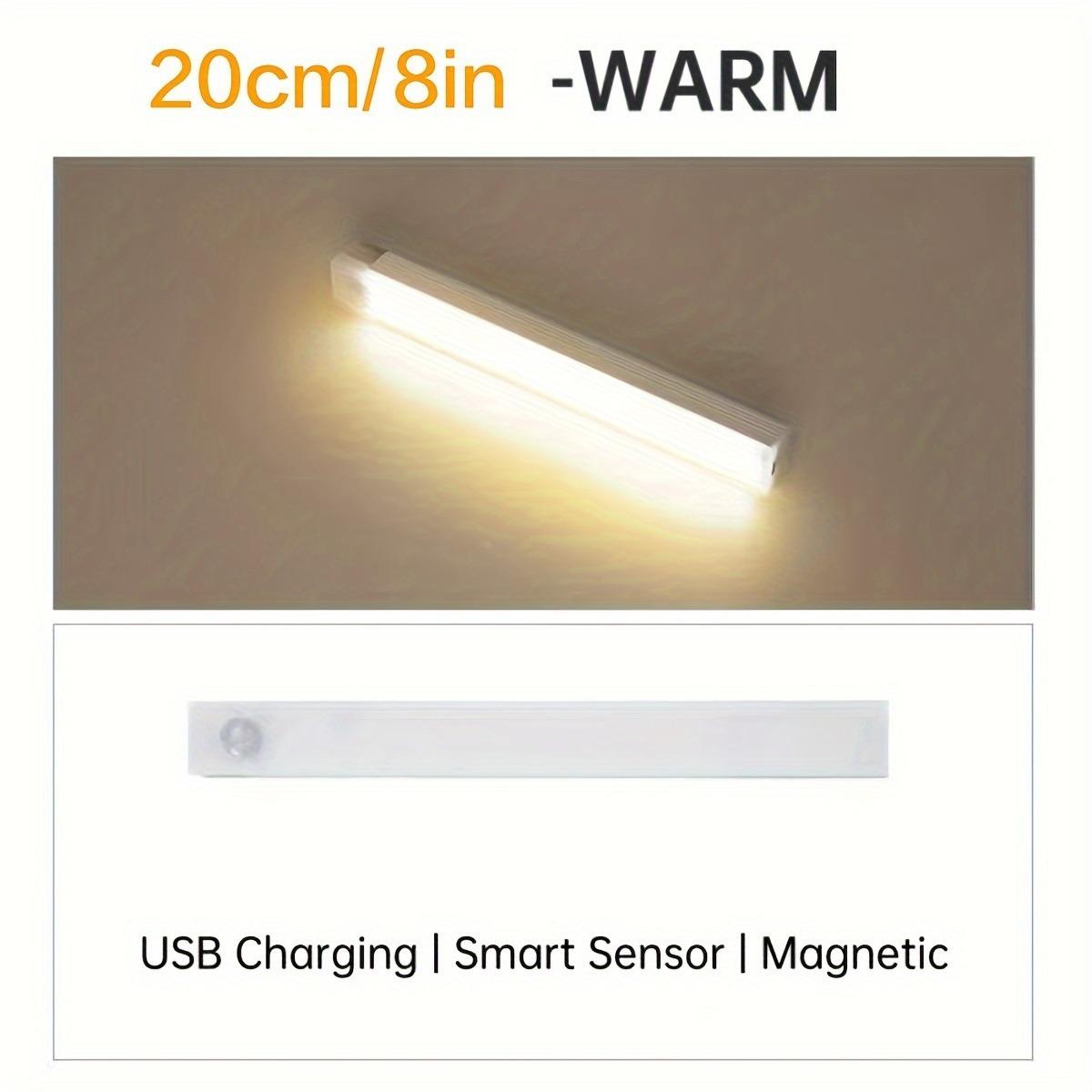 Tira de luz LED con sensor inteligente de cuerpo humano, tira de luz magnética para armario, tira de luz recargable para vitrina de vinos, luz nocturna