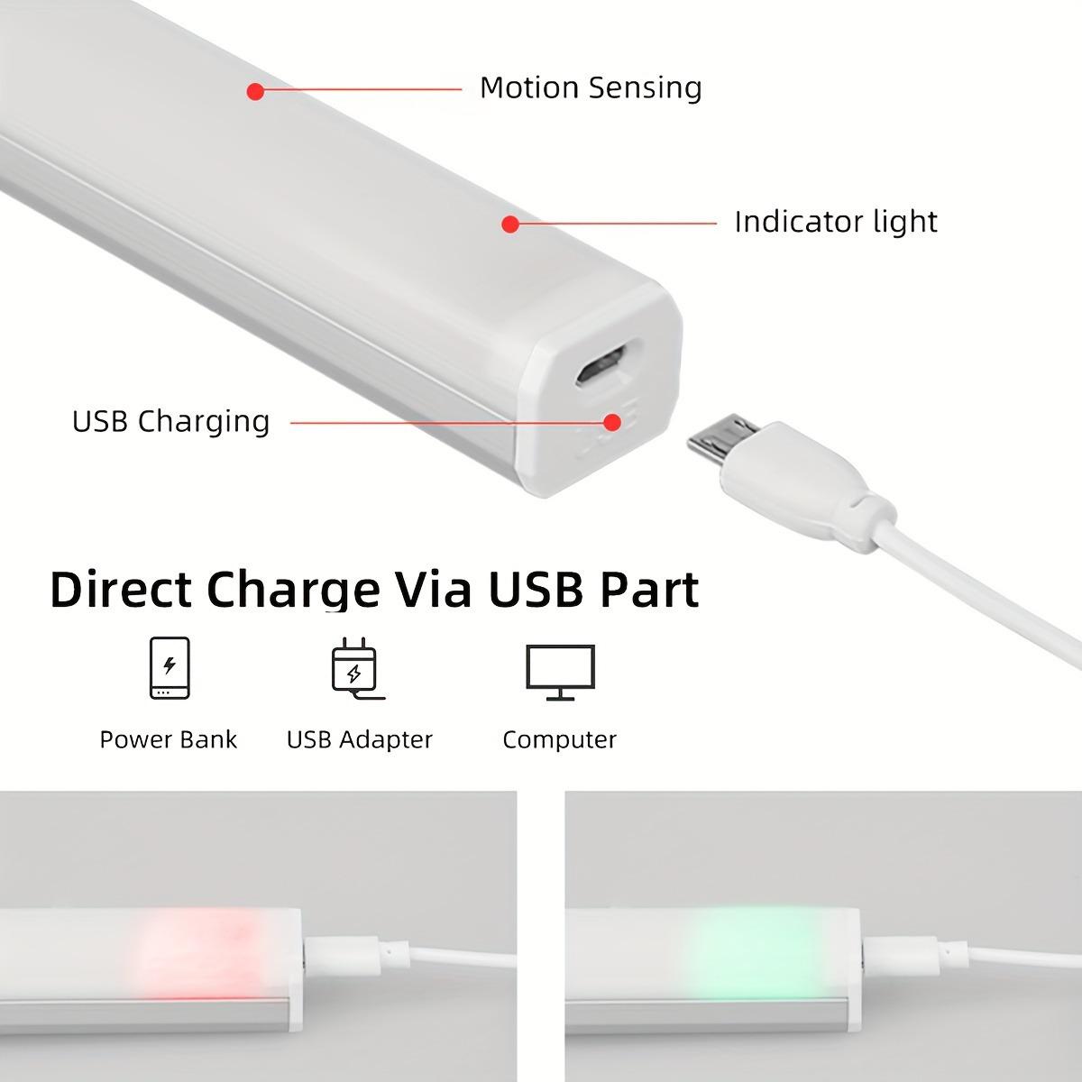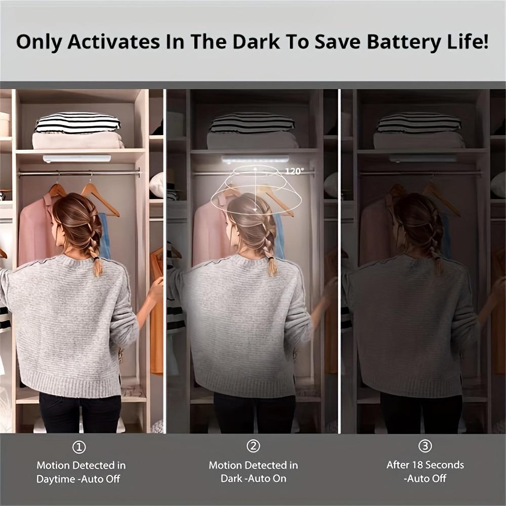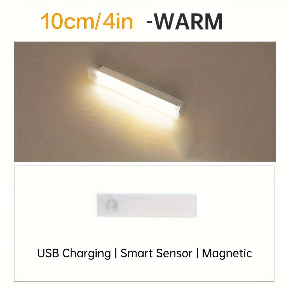 Tira de luz LED con sensor inteligente de cuerpo humano, tira de luz magnética para armario, tira de luz recargable para vitrina de vinos, luz nocturna