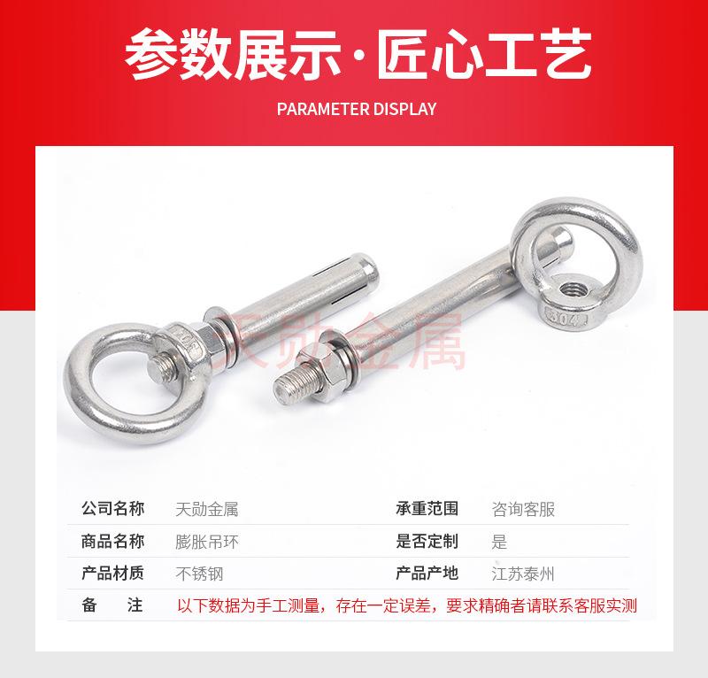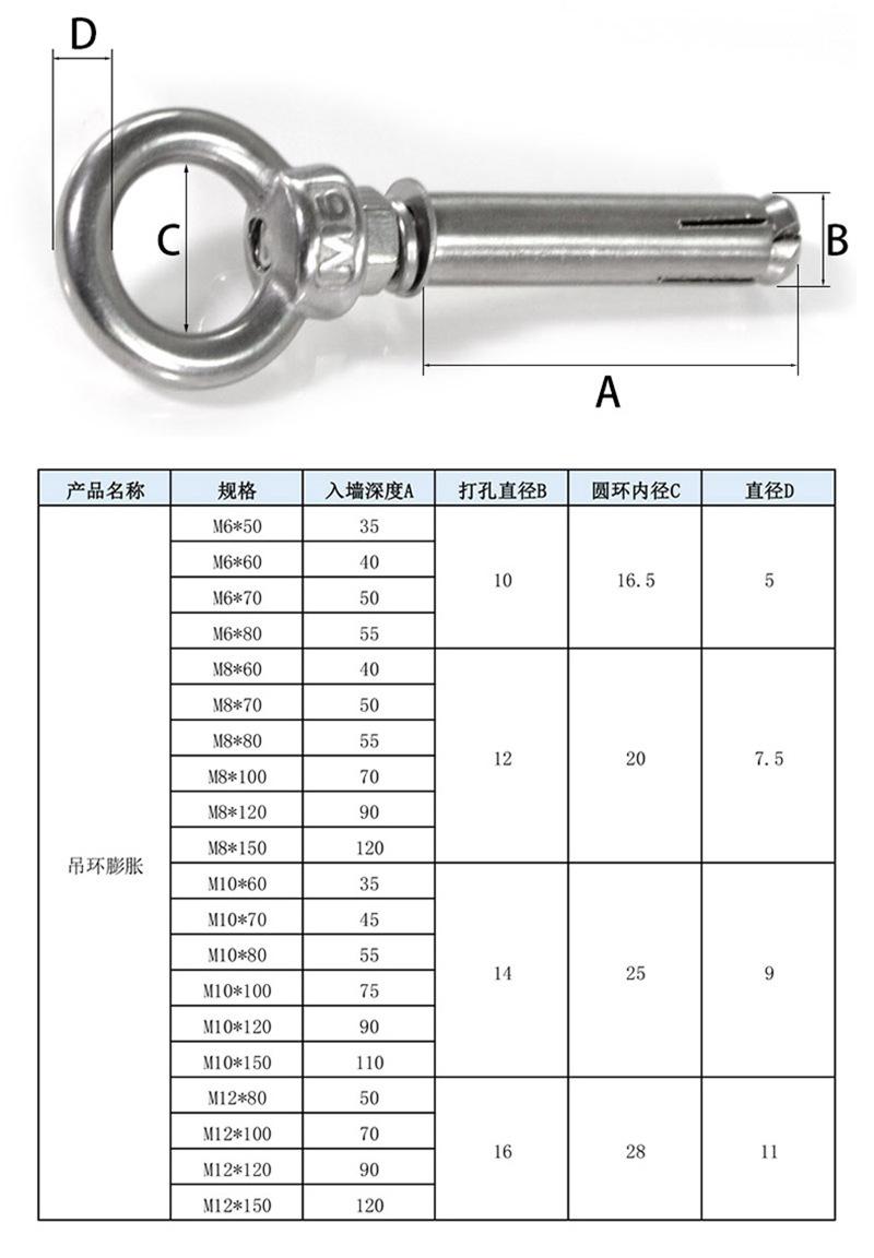Perno de expansión de anillo de elevación con gancho de explosión de tornillo de expansión de acero inoxidable 304 M6M8M10M12M14M16