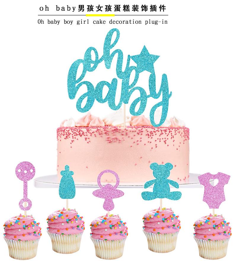 Adorno para pastel para hornear Oh bebé decoración de cumpleaños set de adornos para pastel con tema de fiesta de bebé