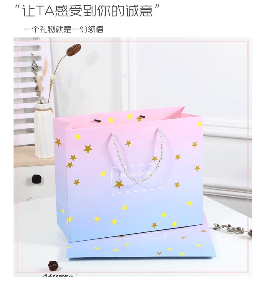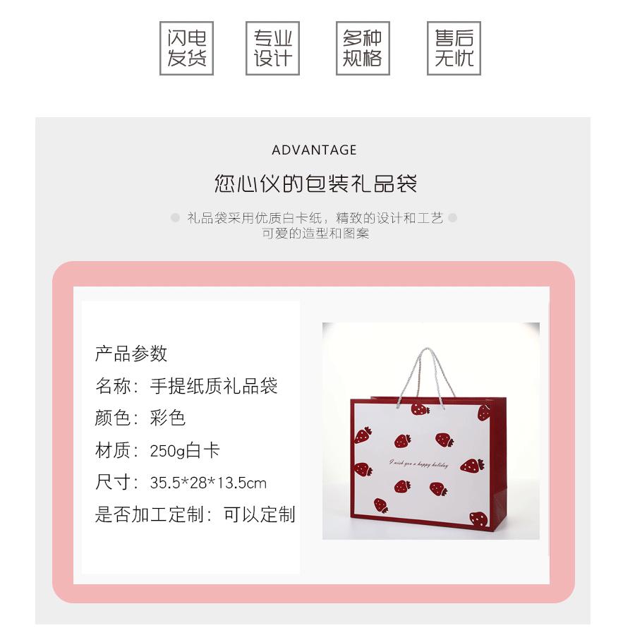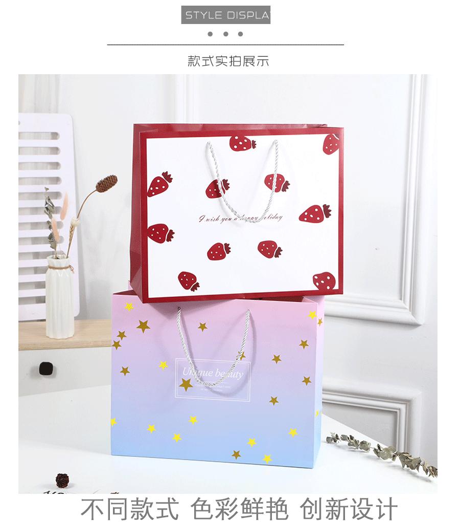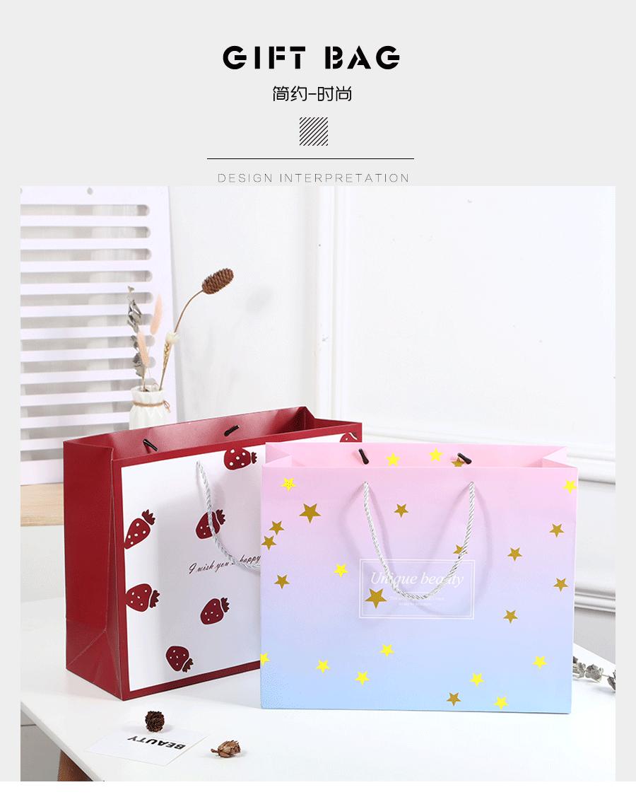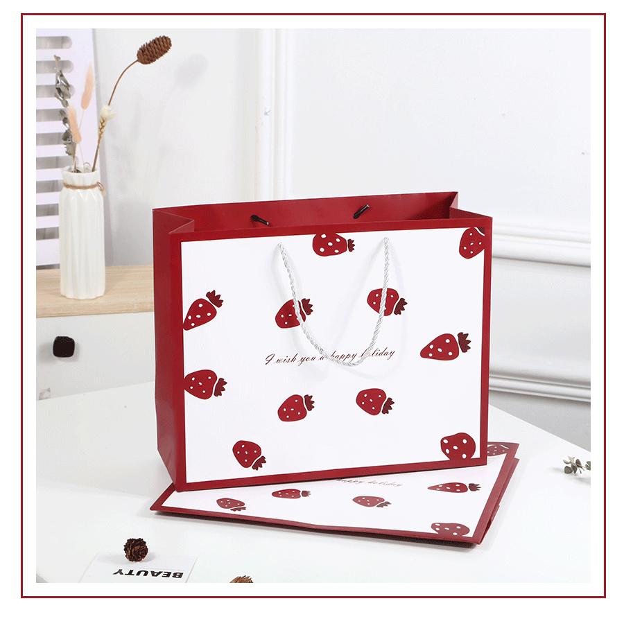 Cartón blanco: El cartón blanco es firme y grueso, con alta rigidez, resistencia al desgarro, suavidad y una superficie plana. El grosor más común es de 210 a 300 gramos, y el más común es el de 230 gramos. Las bolsas de papel impresas en cartón blanco tienen colores vibrantes y una excelente textura, lo que las convierte en la mejor opción para personalizar.