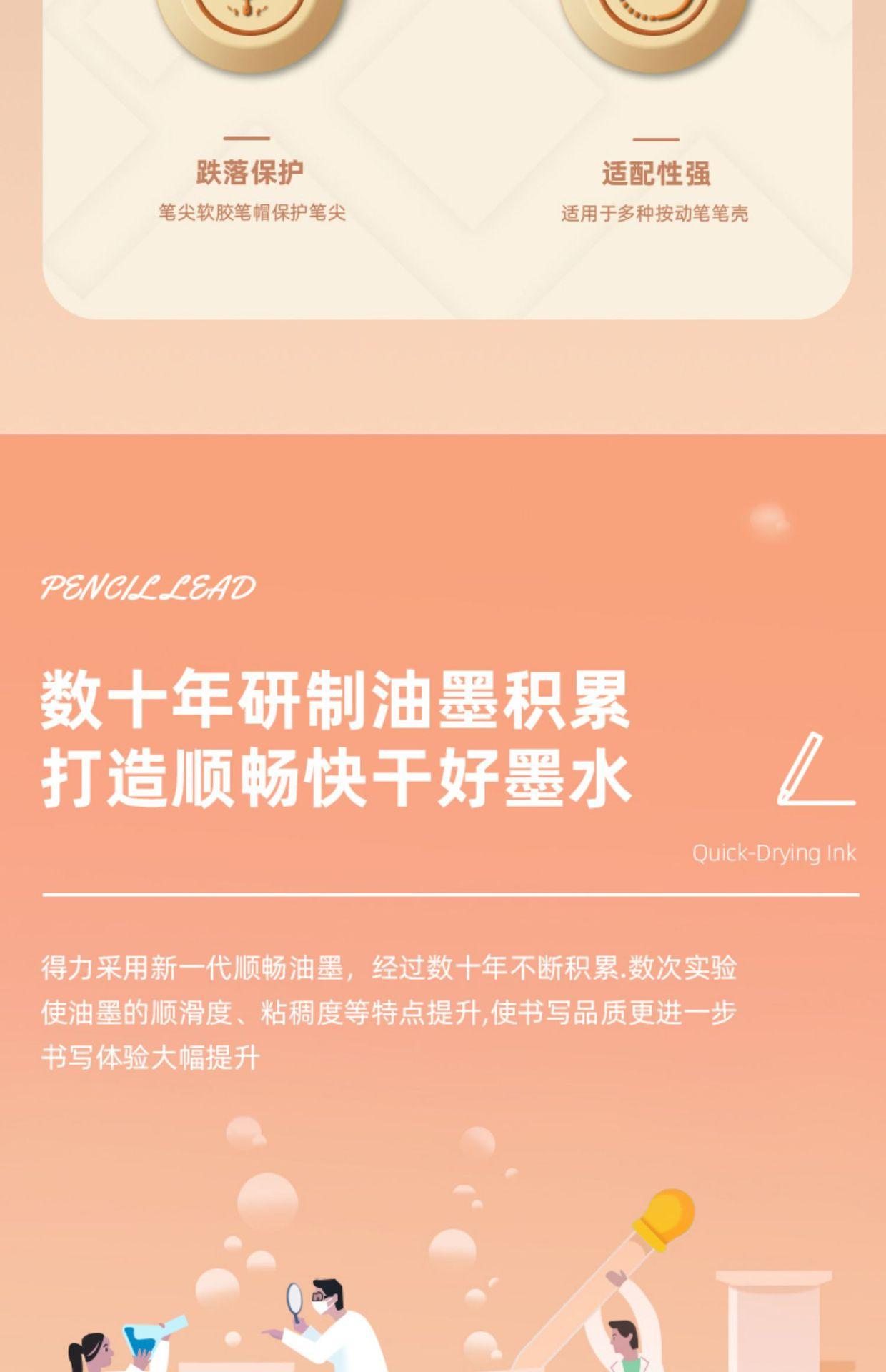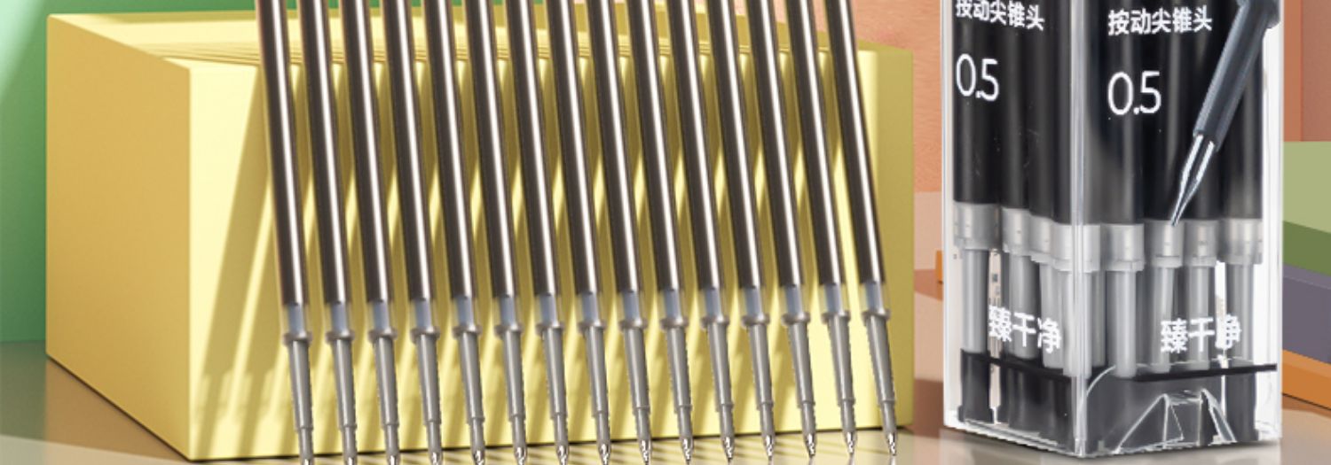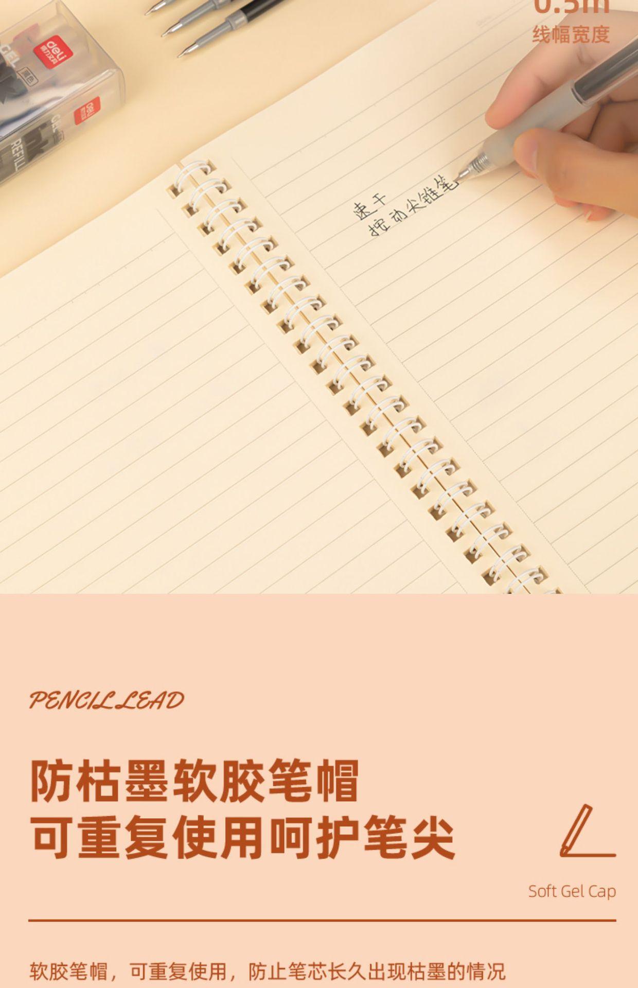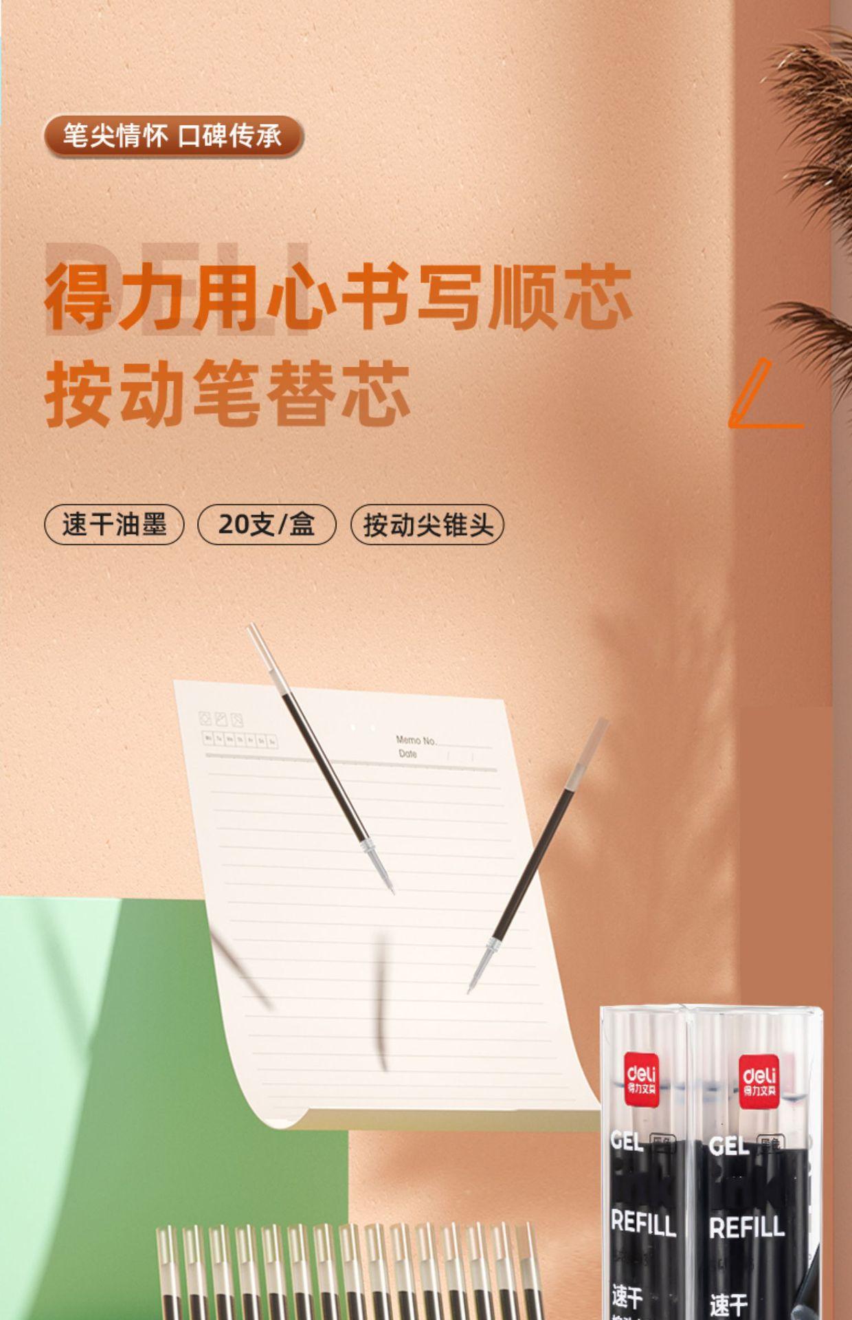 Recambio de bolígrafo Deli Press de punta neutra de 0,5 mm, color negro, con punta ST de secado rápido.
