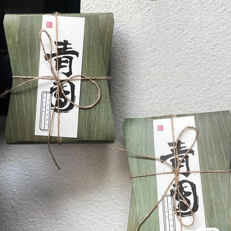 4 pieces of green dumpling leaf box (including card and rope); see details