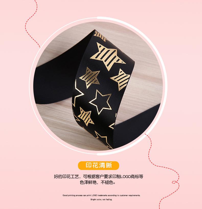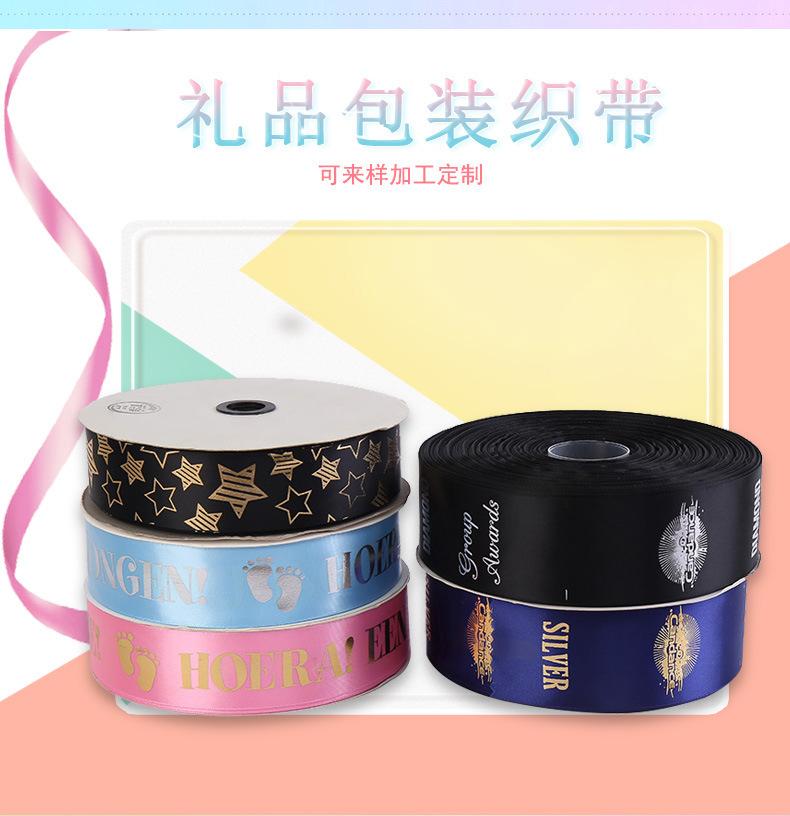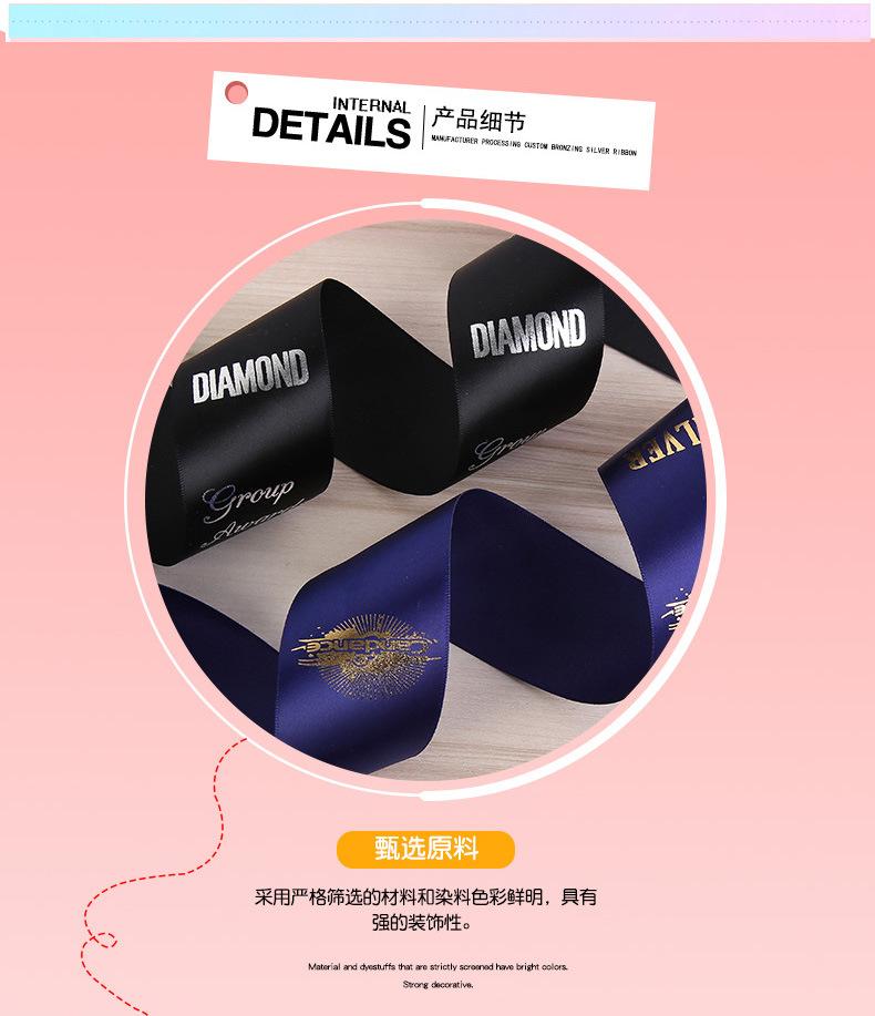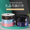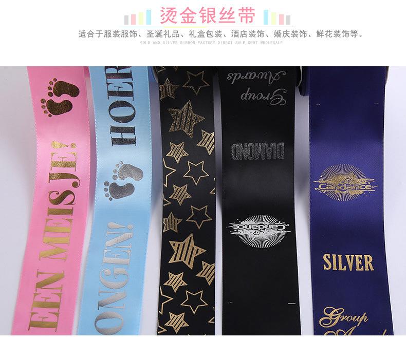 Cinta plateada bronceada con logotipo negro, cinta para embalaje de regalo, cinta decorativa de poliéster, cinta imprimible dorada y plateada.