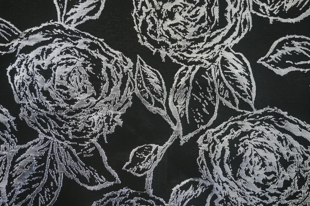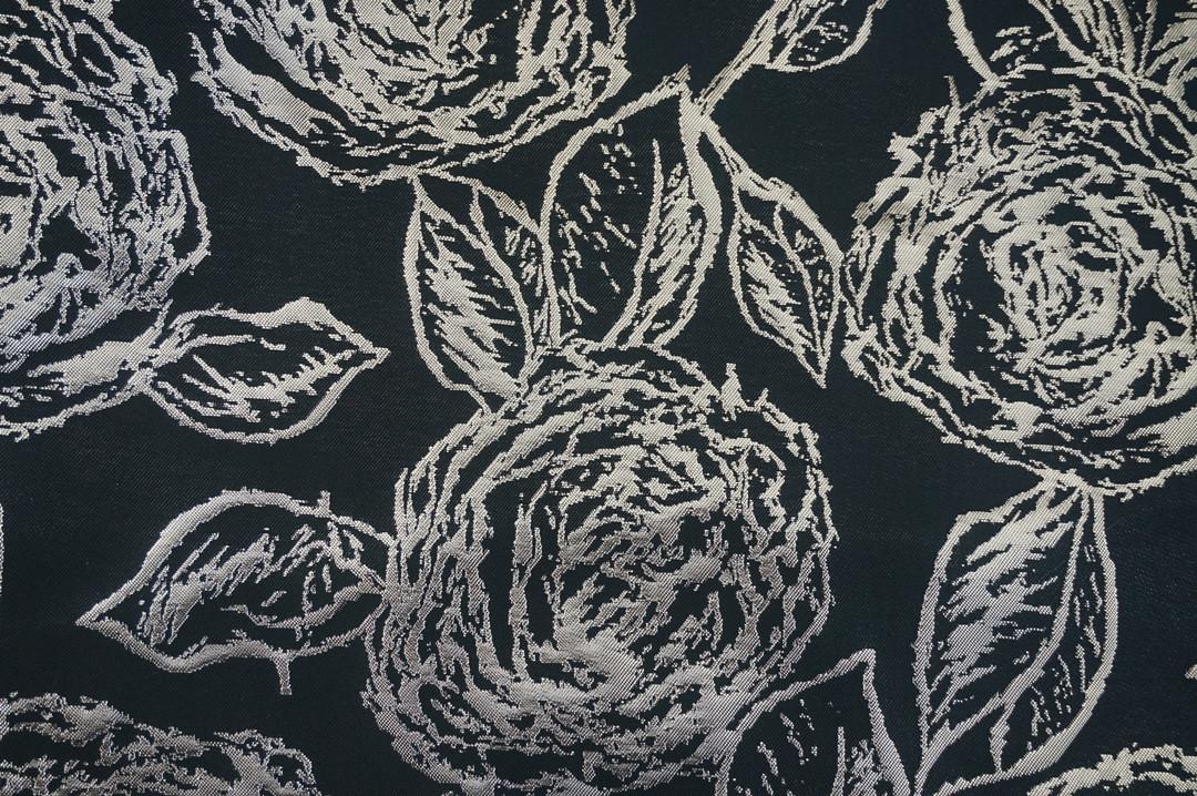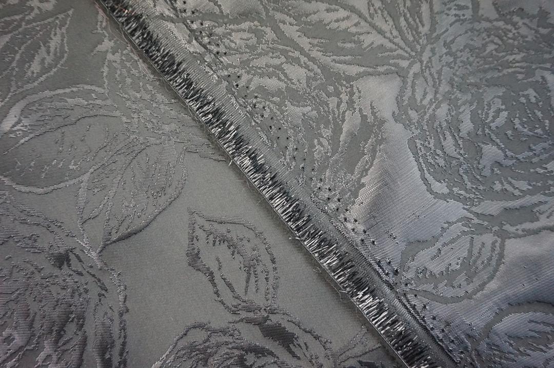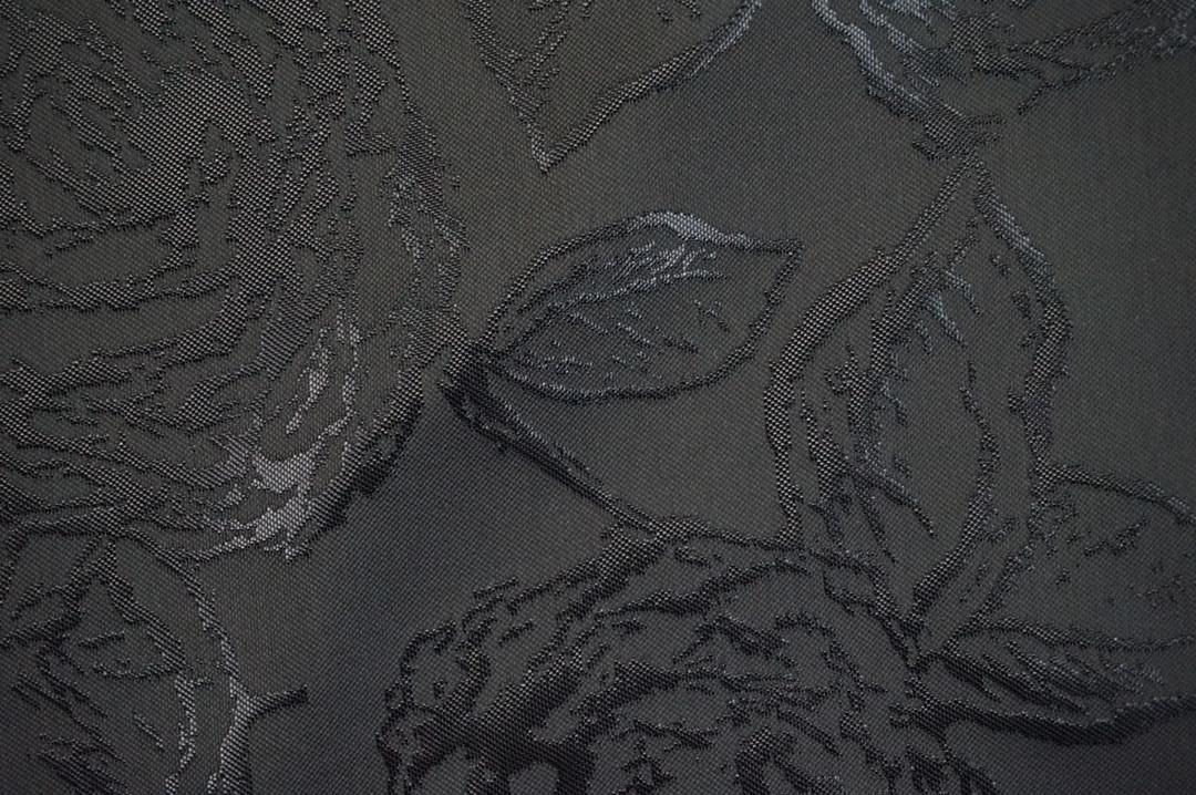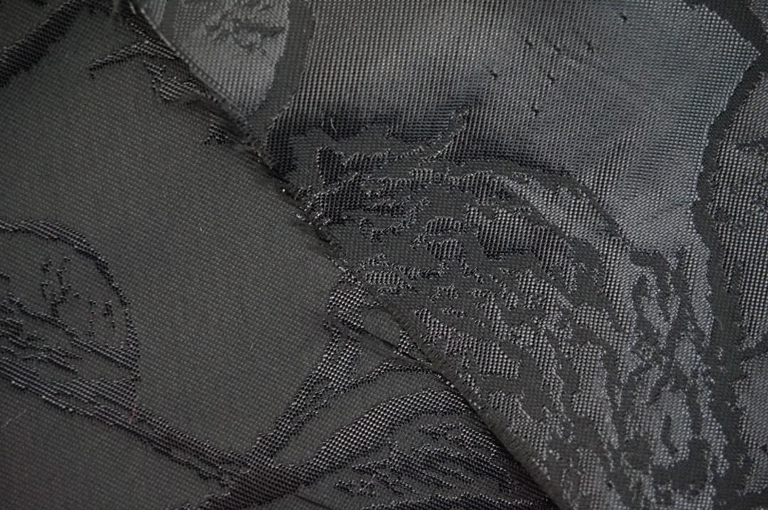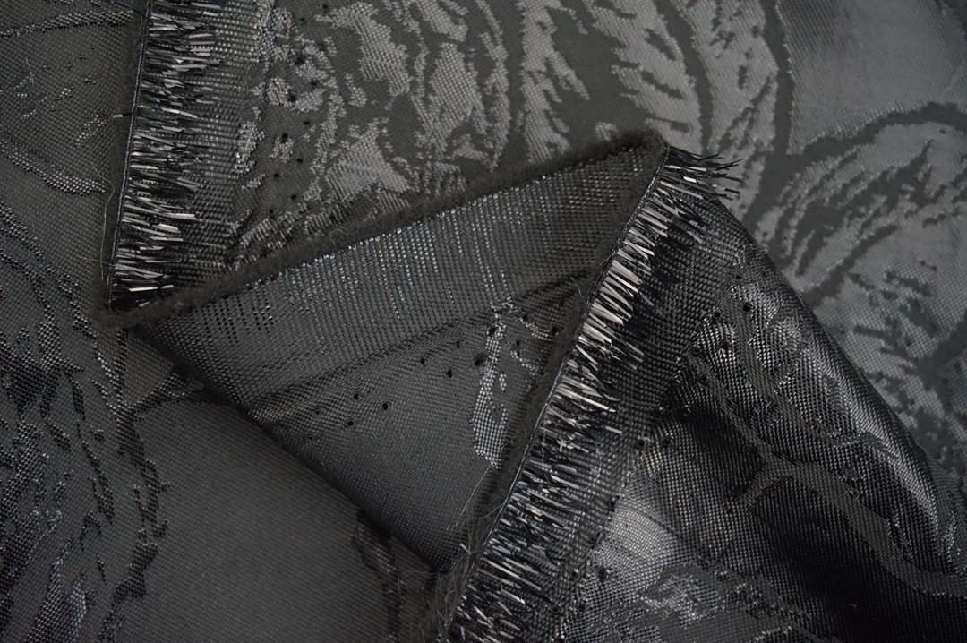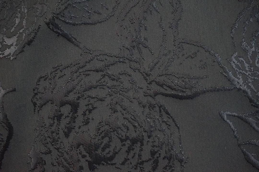 Tipo/Nombre: Tejido jacquard de flores de fondo negro con hilo dorado y plateado