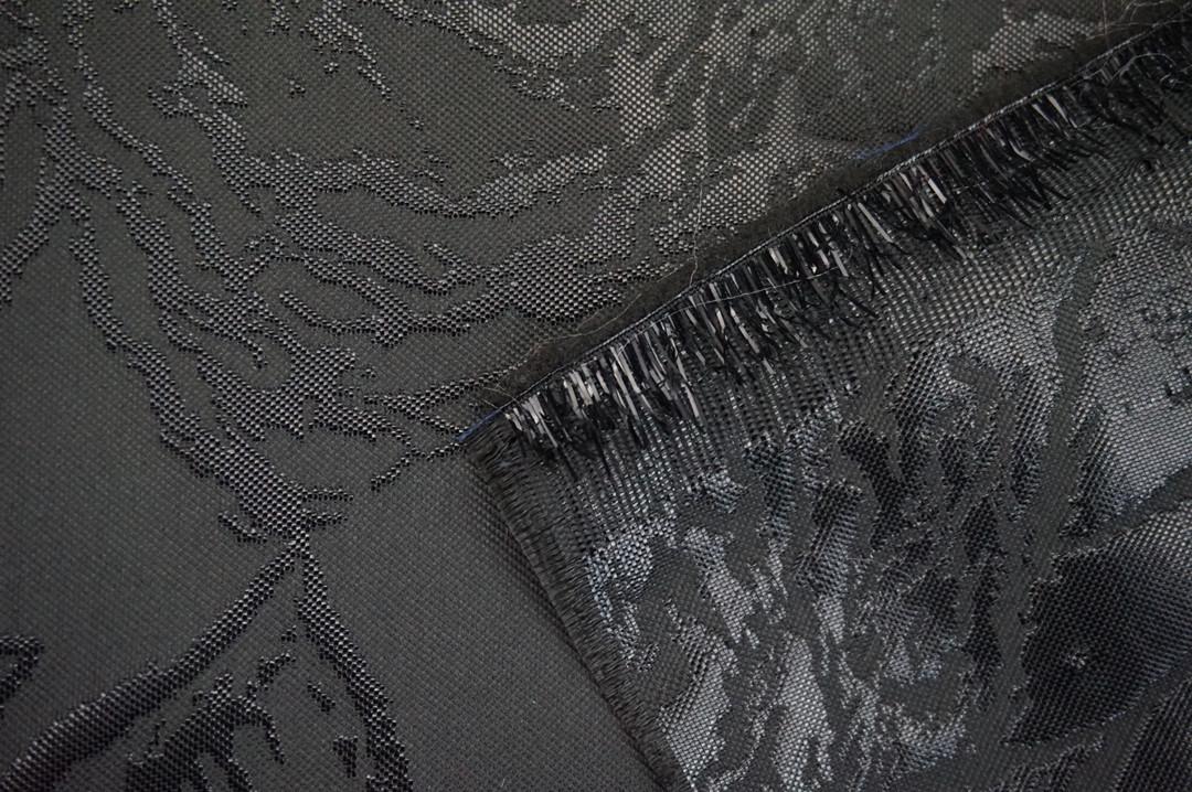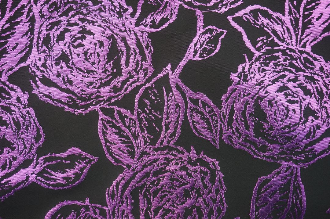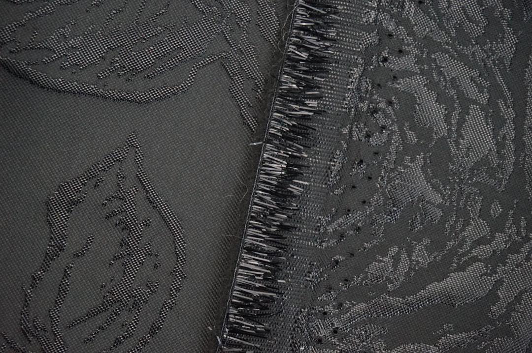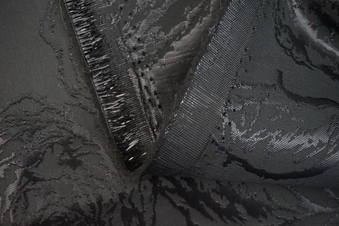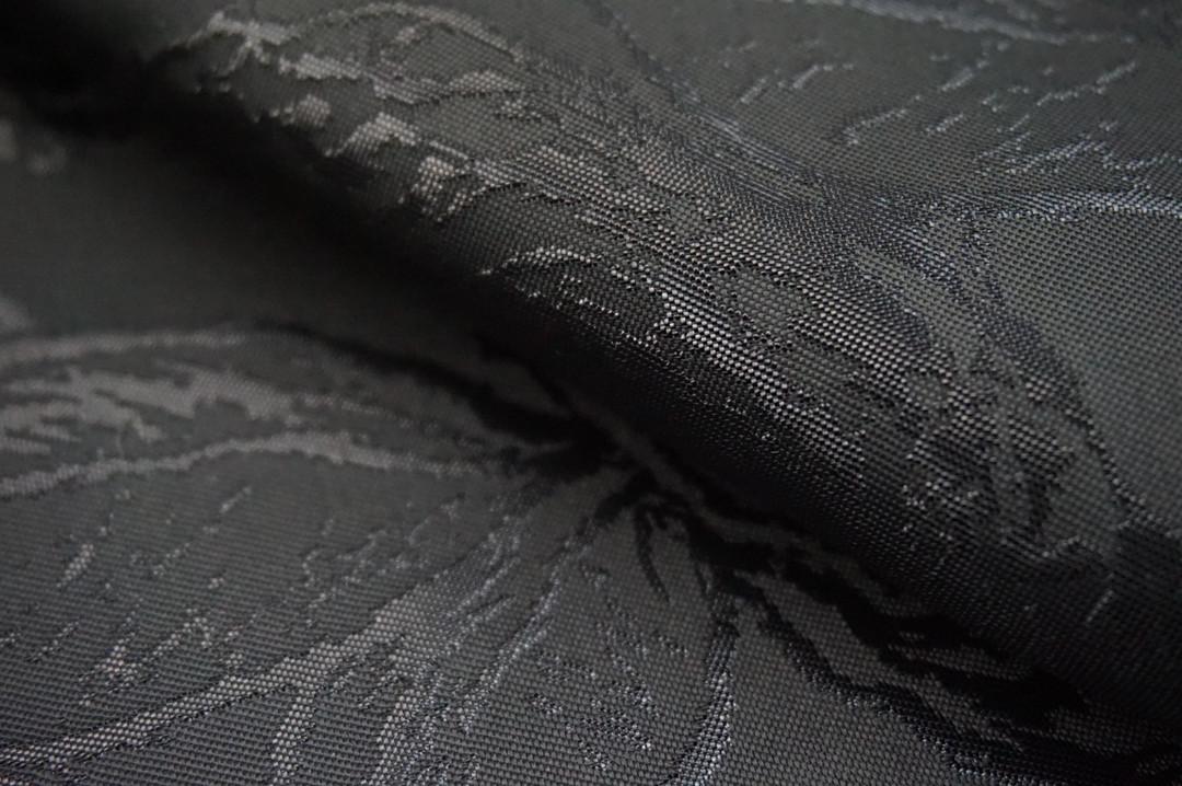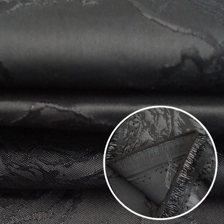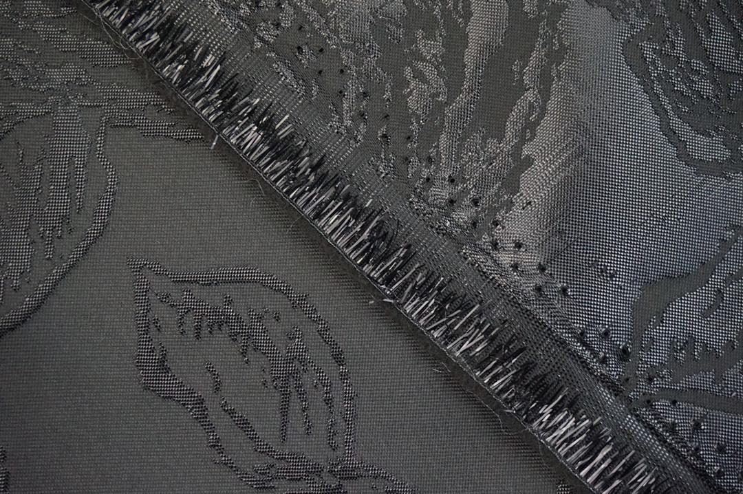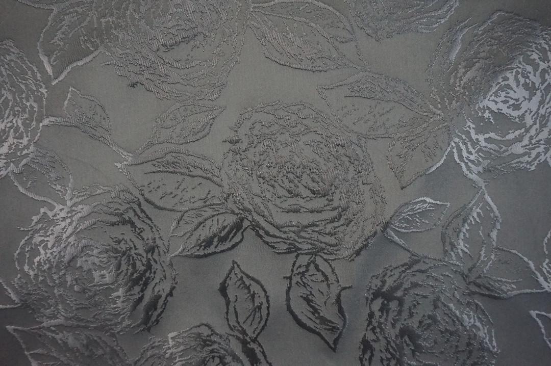 Tipo/Nombre: Tejido jacquard de flores de fondo negro con hilo dorado y plateado