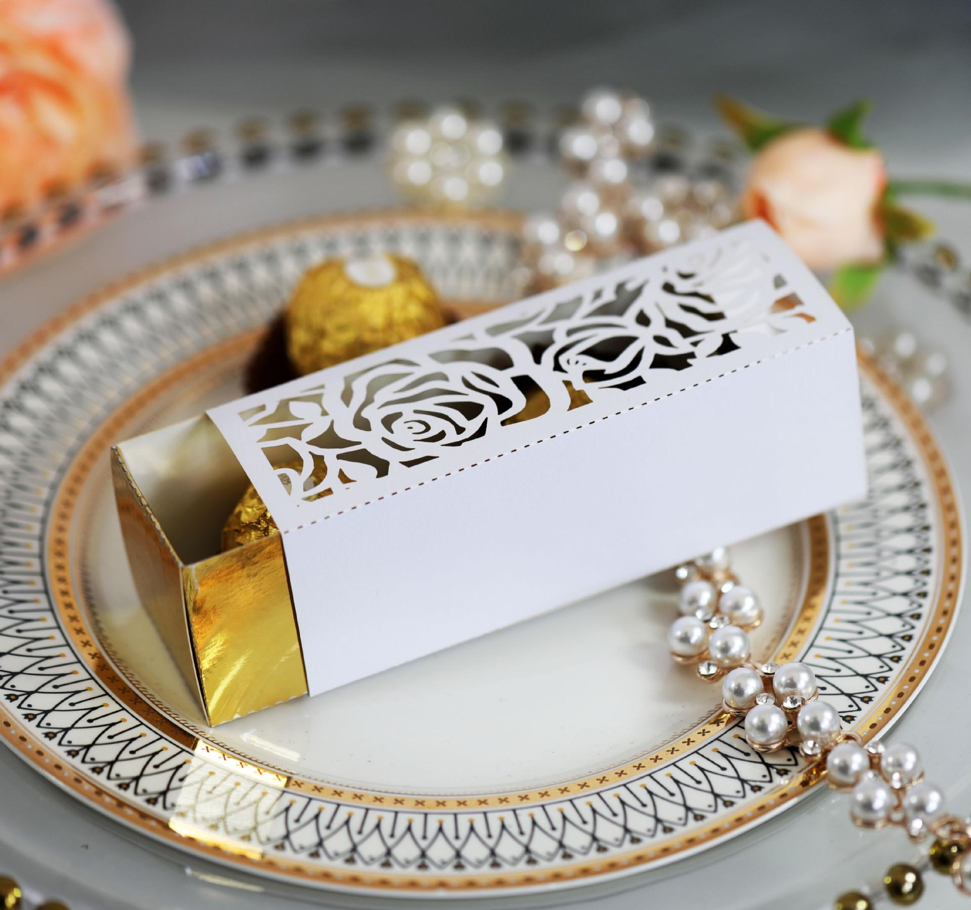 Podemos realizar la personalización de varias flores de papel huecas para regalos de bodas/bordes de pasteles/cajas de dulces de boda huecas con láser/todo tipo de juegos de cajas de papel huecas con láser para embalaje/tarjetas de felicitación huecas/invitaciones huecas/tarjetas de asiento y otros diversos accesorios artesanales relacionados con el láser.