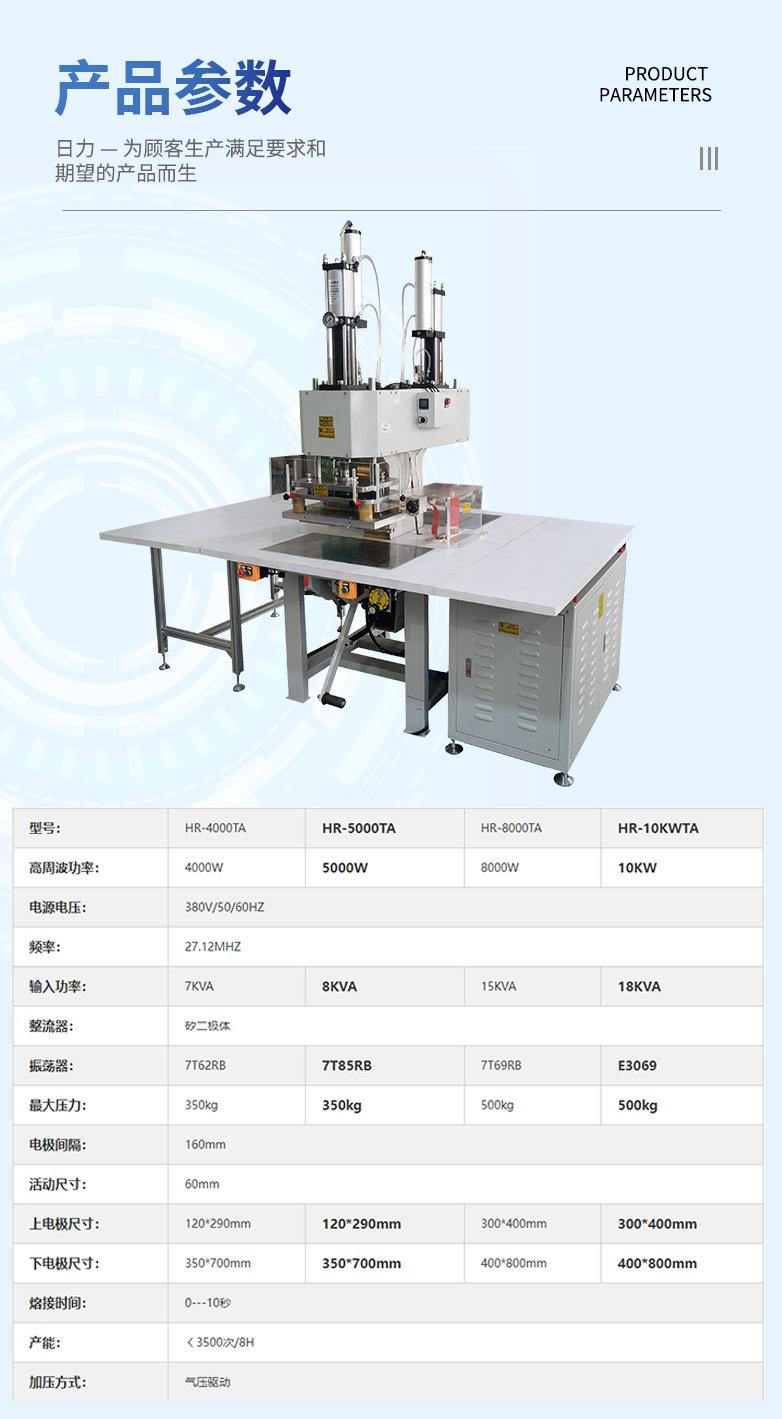 Máquina de doble cabezal con presión de aceite, equipo de estampado de líneas falsas sin costuras, máquina de sellado térmico de material de película, prensado en caliente de alta frecuencia de 8 kW, máquina de ondas de alta frecuencia