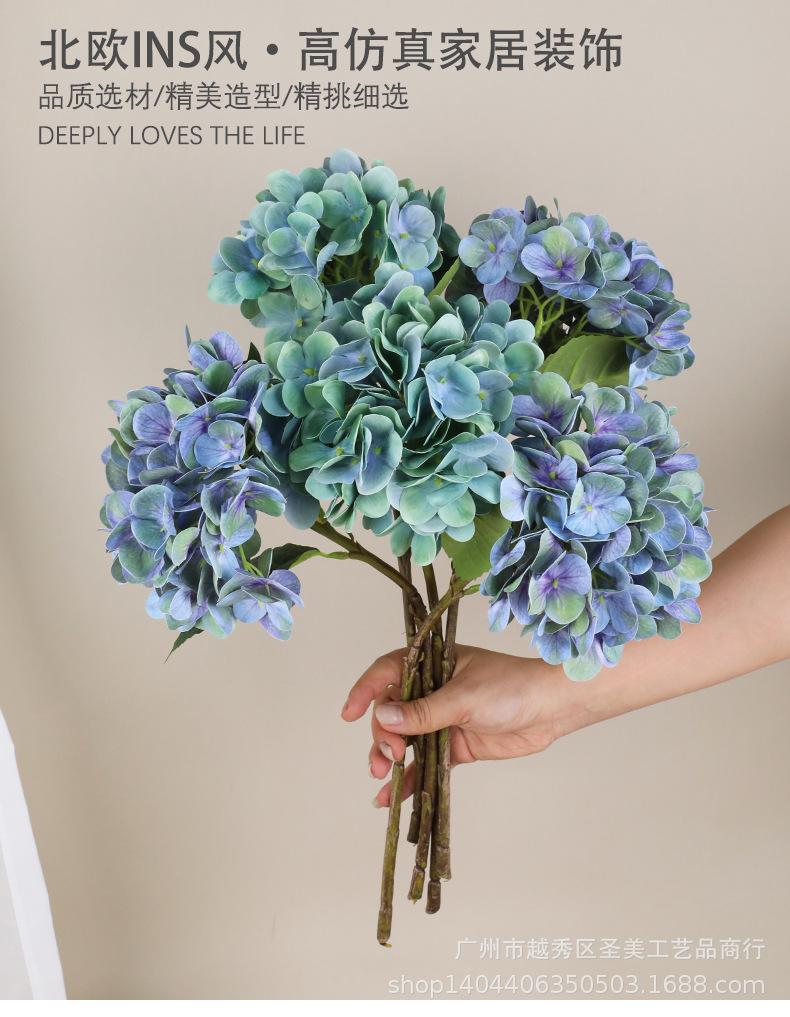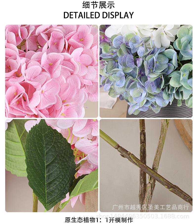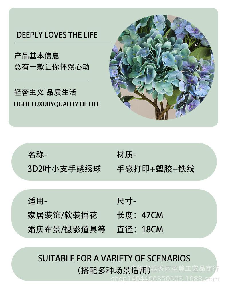 Hortensia de hoja 3D2 de alta simulación para bodas, auditorio, flores, hortensia de madera transfronteriza, decoración de hotel, accesorios de fotografía para el hogar.