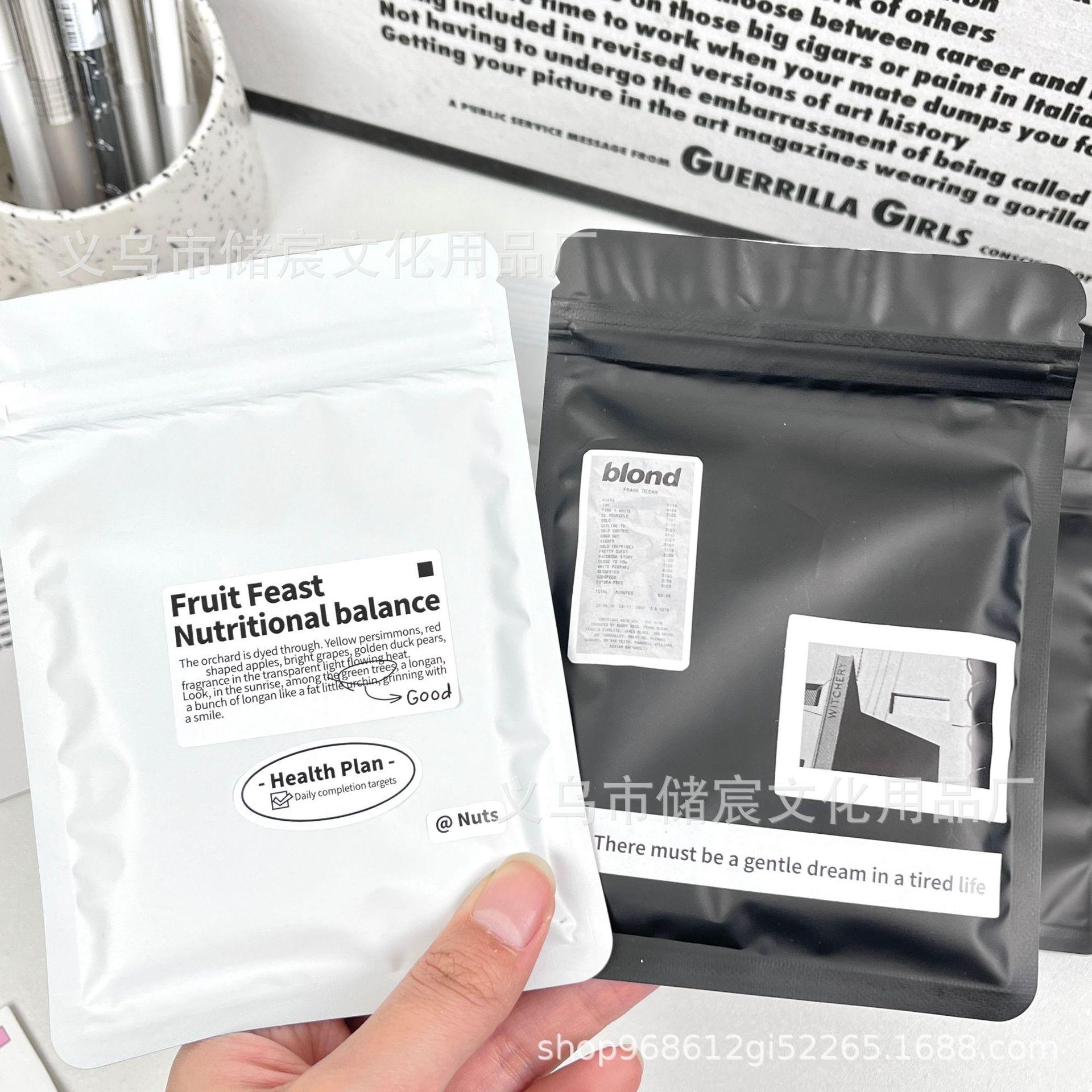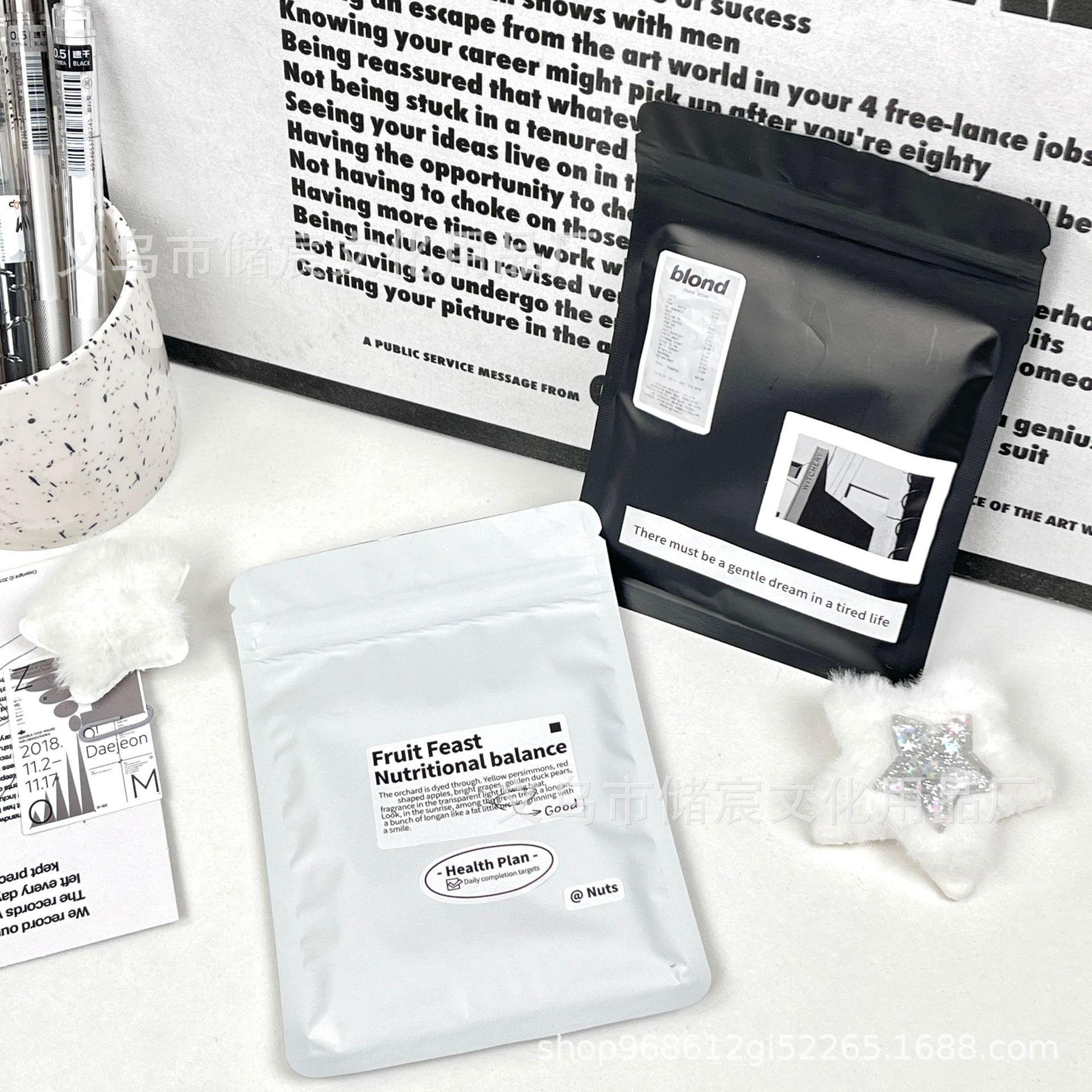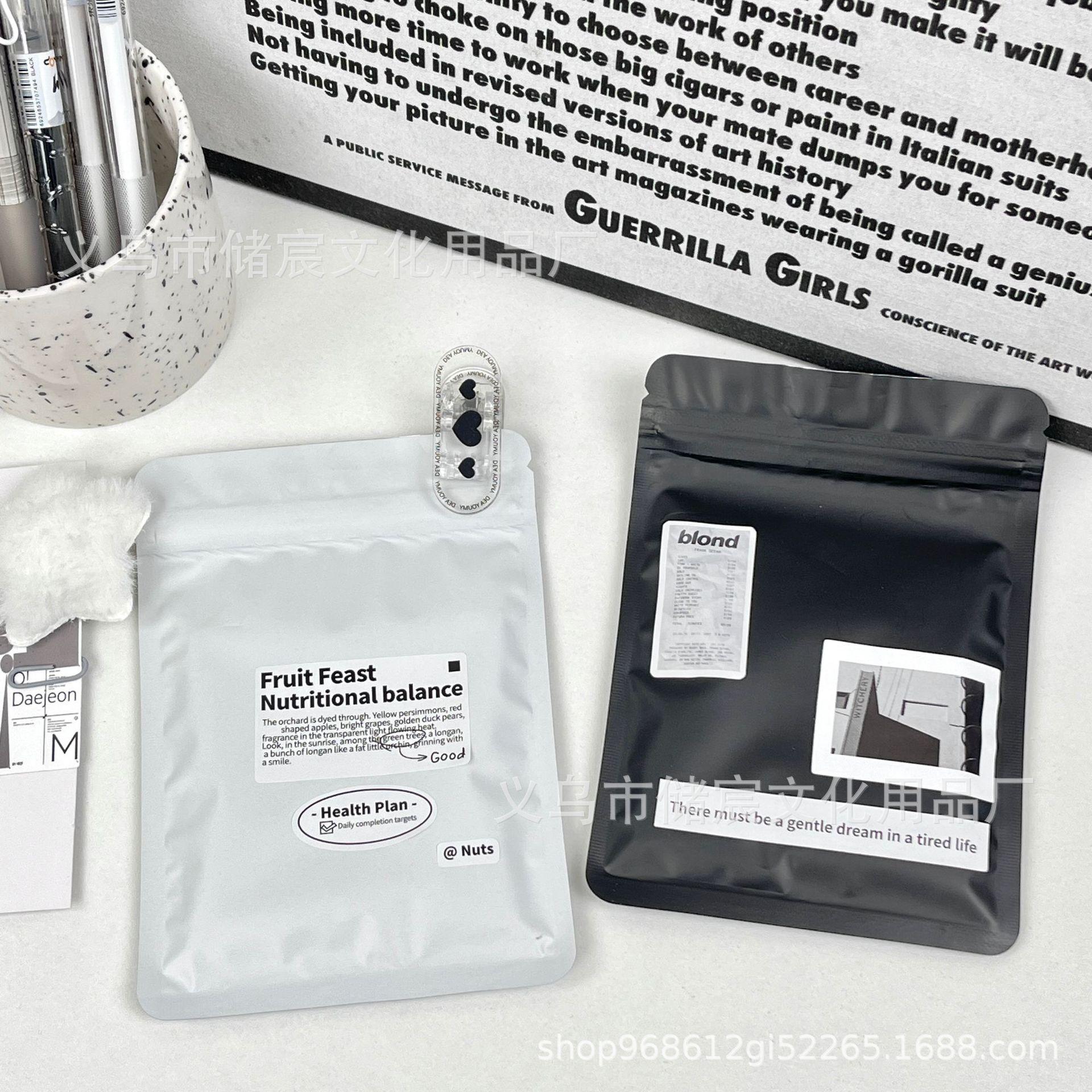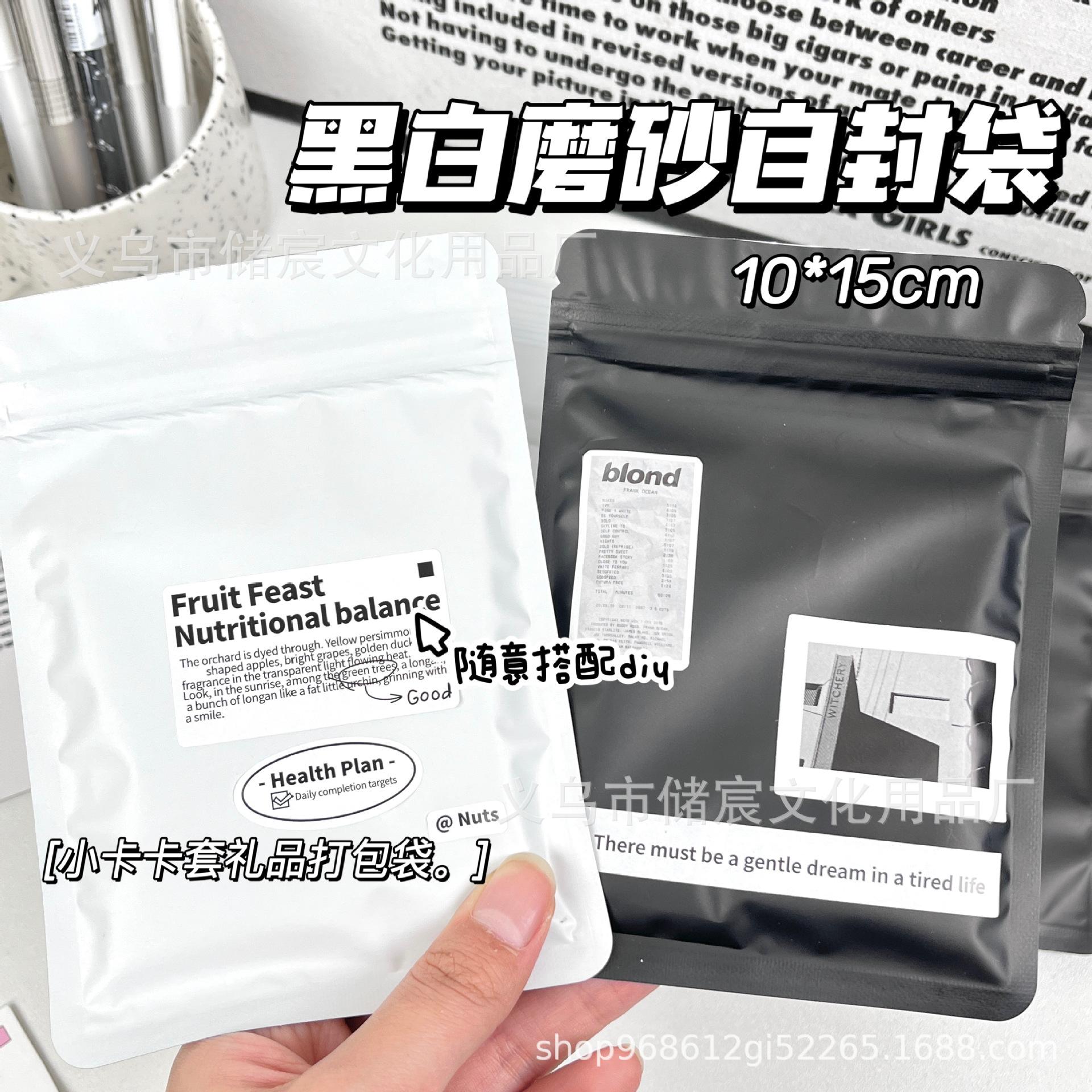 Bolsa ziplock esmerilada en blanco y negro simple de alta calidad, porta tarjetas pequeño, bolsa para embalaje de tarjetas, bolsa de regalo con pegatinas para diario
