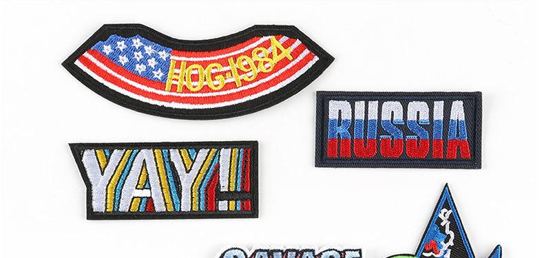 Pegatinas de tela bordadas con fresas, parche con letras en inglés, accesorios de ropa, parche bordado Zhangzi, insignia bordada