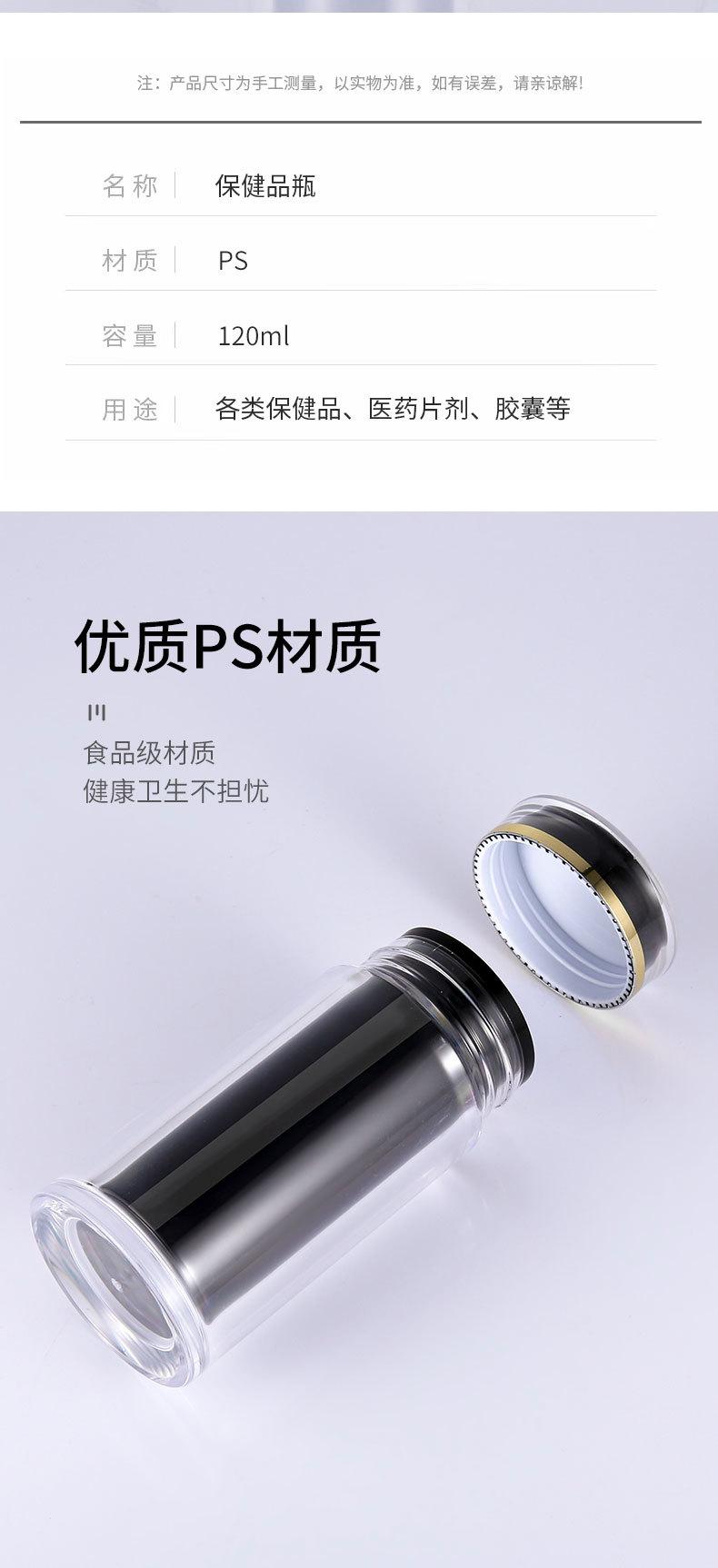 Botella de plástico de alta gama de 120 ml, esmerilada, para productos sanitarios, de acrílico, pequeña, para medicamentos, vacía, con cápsula transparente.