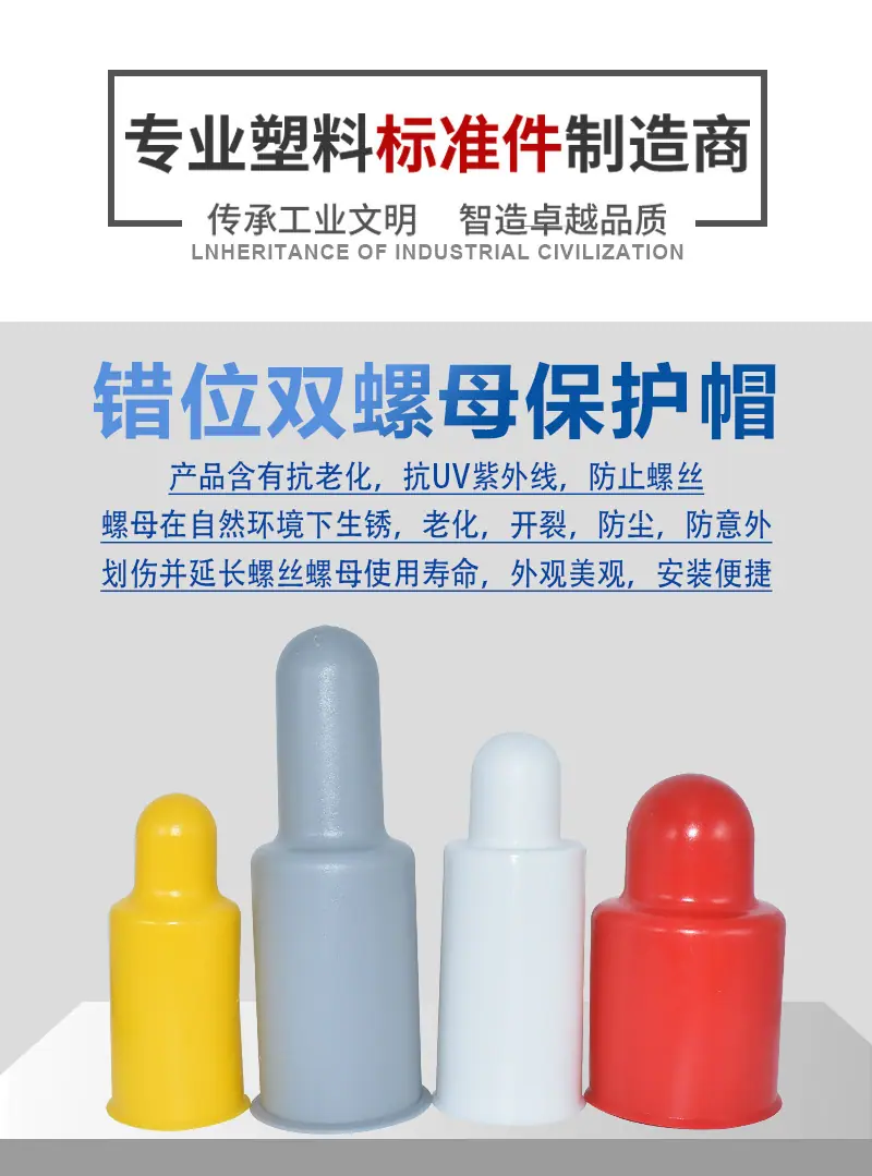 La fábrica de sujetadores de plástico de herencia suministra tapa protectora de tuerca doble, tapa protectora de perno de anclaje con estándar de protección ambiental europeo y americano.