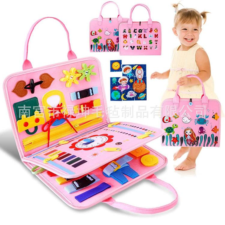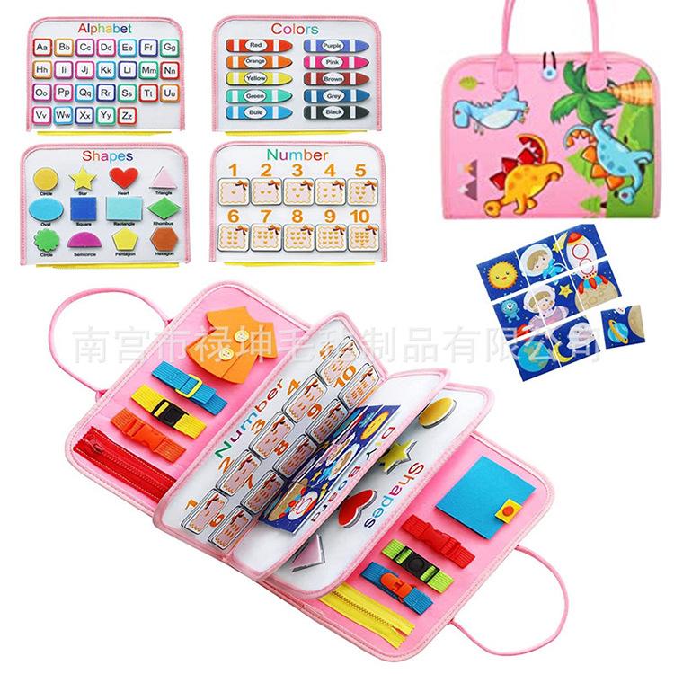 Tablero de aprendizaje de educación temprana con bolsa de fieltro, tablero de vestir y actividades para niños, tablero de educación temprana, tablero educativo de fieltro para niños pequeños, juguetes