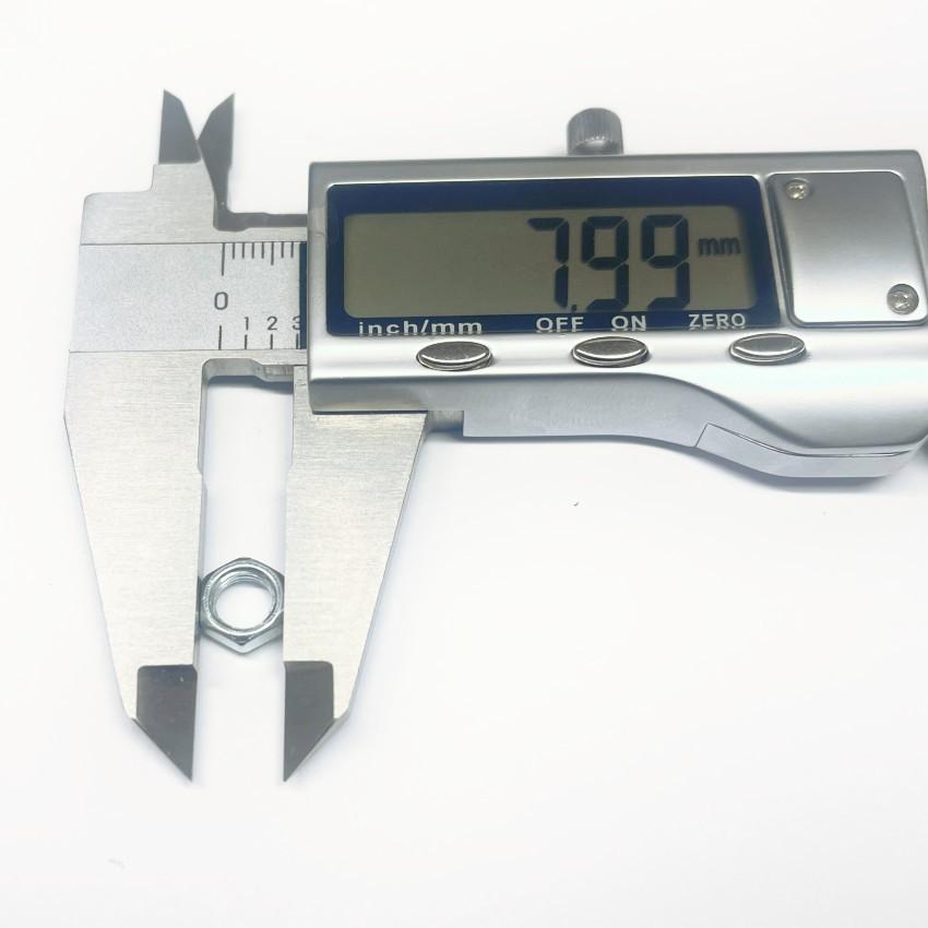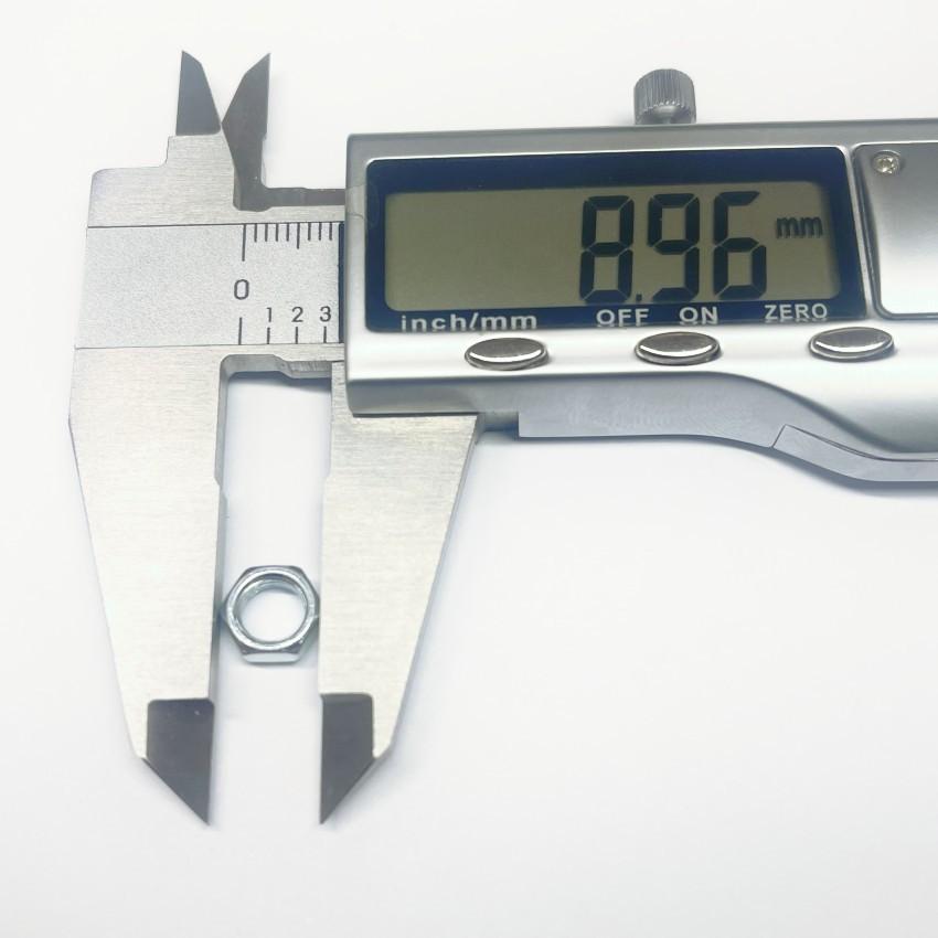 Las tuercas hexagonales delgadas, también conocidas como tuercas hexagonales extraplanas de paso fino, tienen el código de la norma nacional GB/T808-1988. Sus lados opuestos son generalmente similares a los de las tuercas hexagonales estándar, pero su grosor es menor y sus roscas también son más finas, lo que les da una apariencia más plana. Por eso se denominan tuercas hexagonales extraplanas de paso fino. Generalmente, se las conoce como tuercas delgadas. La norma nacional estipula que el diámetro de la rosca debe coincidir con el tamaño de la misma.paso(El ancho de dos hilos adyacentes), por ejemplo: hilo de 6 mm de diámetropasoEs una rosca de 1mm y 8mm de diámetro.pasoEl paso de rosca de las roscas de 1,25 mm y 10 mm es de 1,5 mm, y el de las roscas de 12 mm es de 1,75 mm. Si el paso de la tuerca es menor que el especificado en la norma nacional, se considera una tuerca de paso fino.