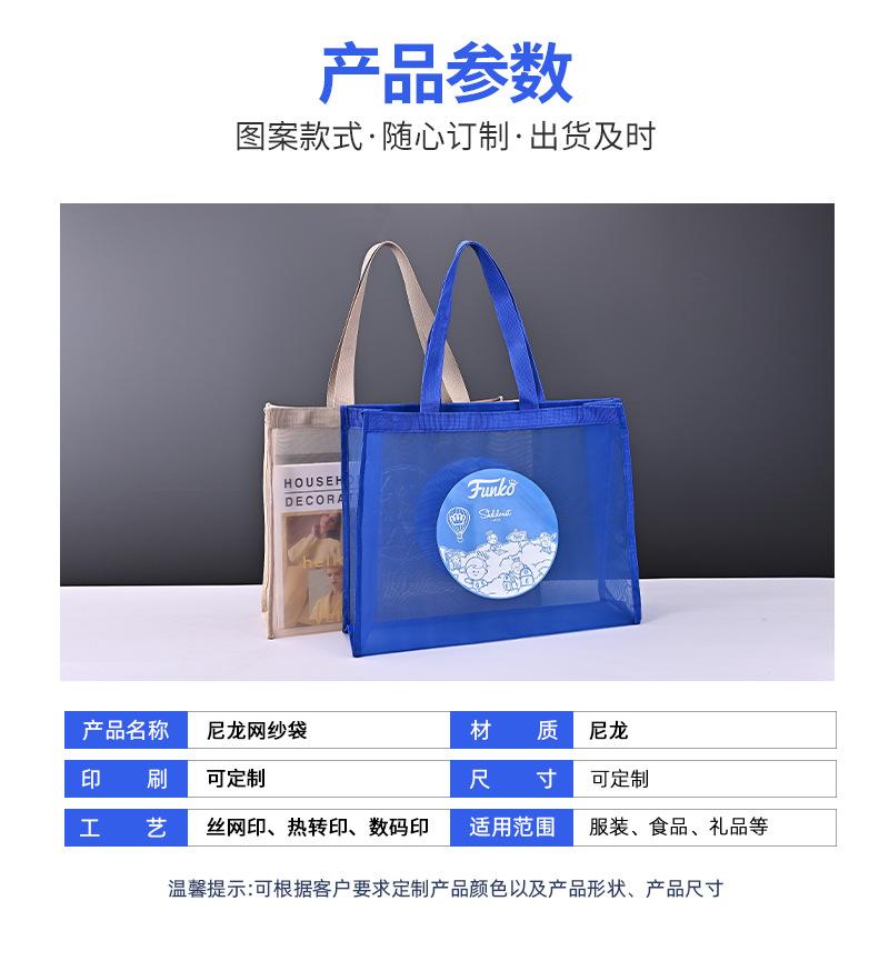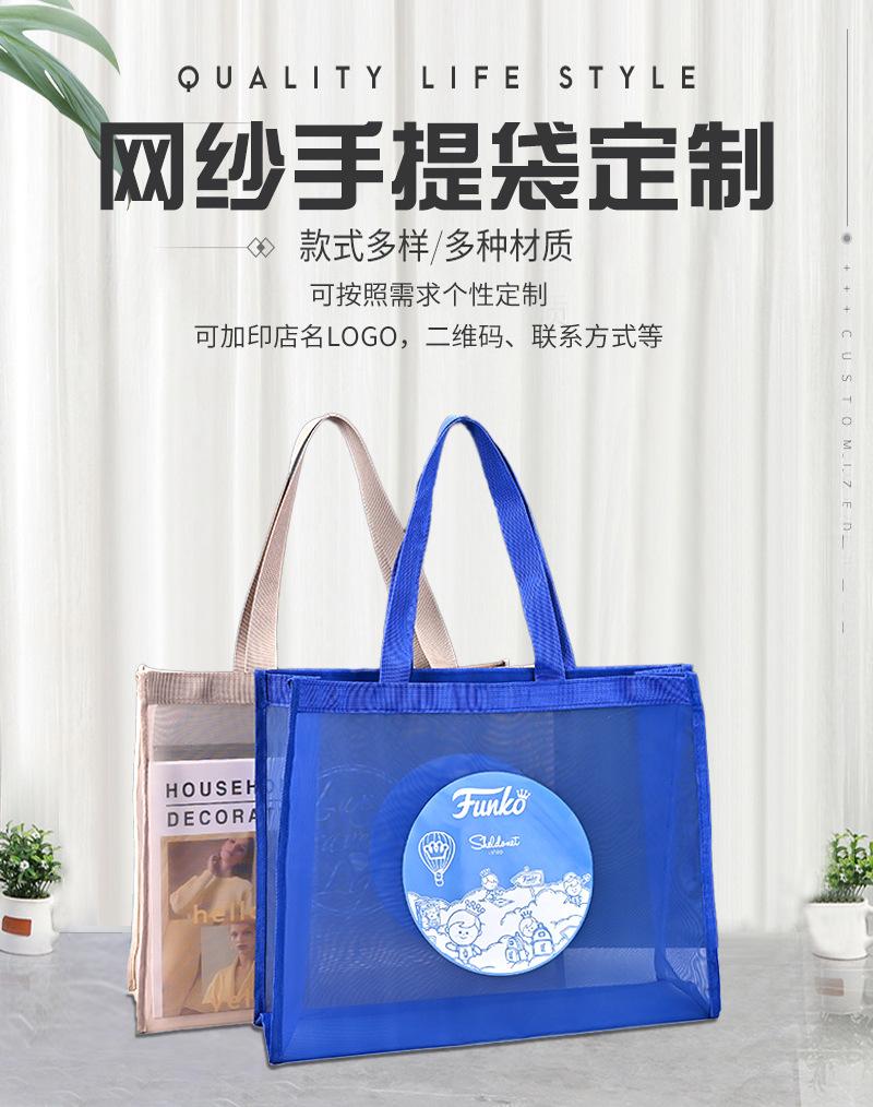 Bolsa de compras de malla transpirable, bolsa de malla de nailon portátil, bolsa de almacenamiento de viaje de playa, bolsa de malla de poliéster, logotipo al por mayor