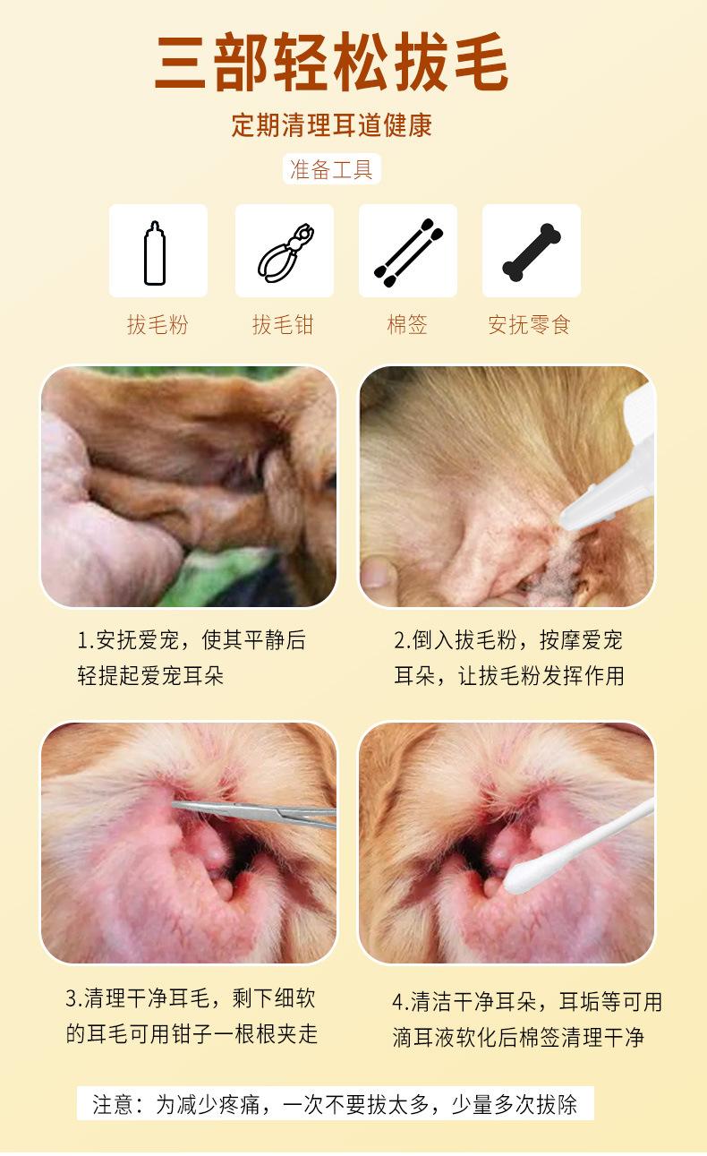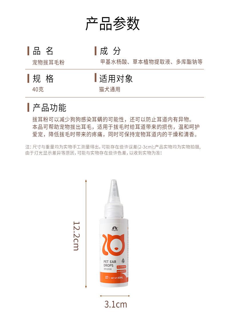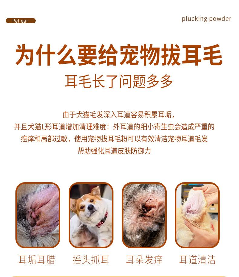 Compra Polvo Depilatorio para Orejas de Perro 40g Venta al por Mayor Polvo Limpiador de Oídos para Mascotas Herramienta Depilatoria para Orejas Productos para el Cuidado y Limpieza del Canal Auditivo de Gato al por mayor en Joom.pro