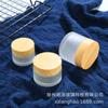 Botella de crema de vidrio esmerilado, 50 g, 30 g, 20 g, 15 g y 10 g, con tapa de veta de madera.