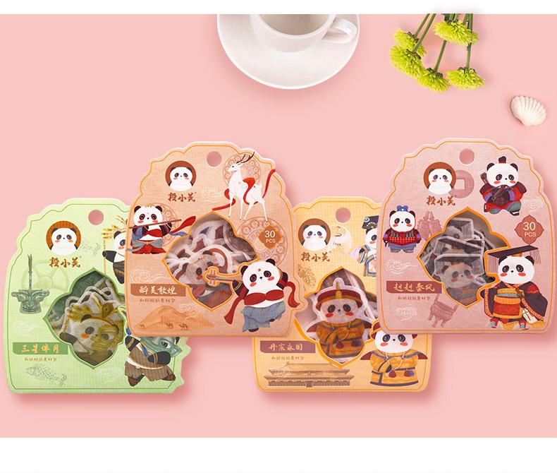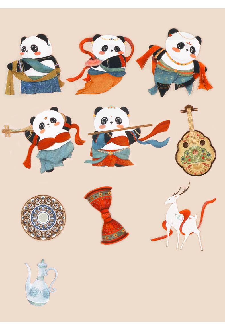 Serie Aventura Tesoro Nacional Paquete de Material de Stickers Washi, Pegatinas DIY de Panda Moderno Estilo Chino Nuevo en Stock