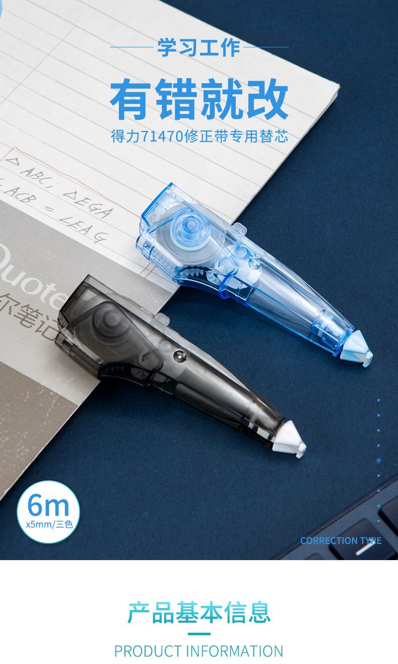 Deli deli 71470 cinta correctora pequeña portátil gran capacidad asequible para estudiantes para reemplazar el núcleo
