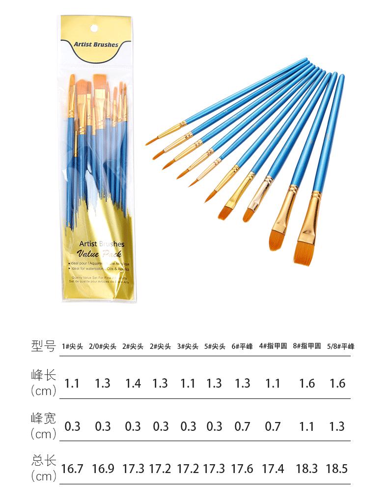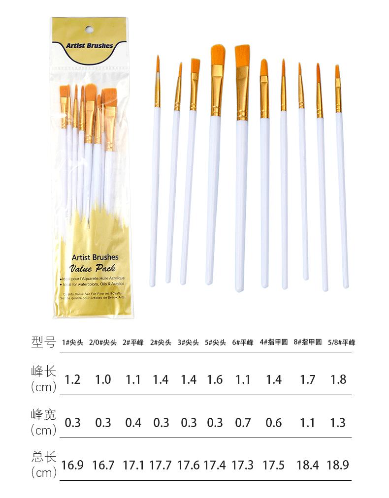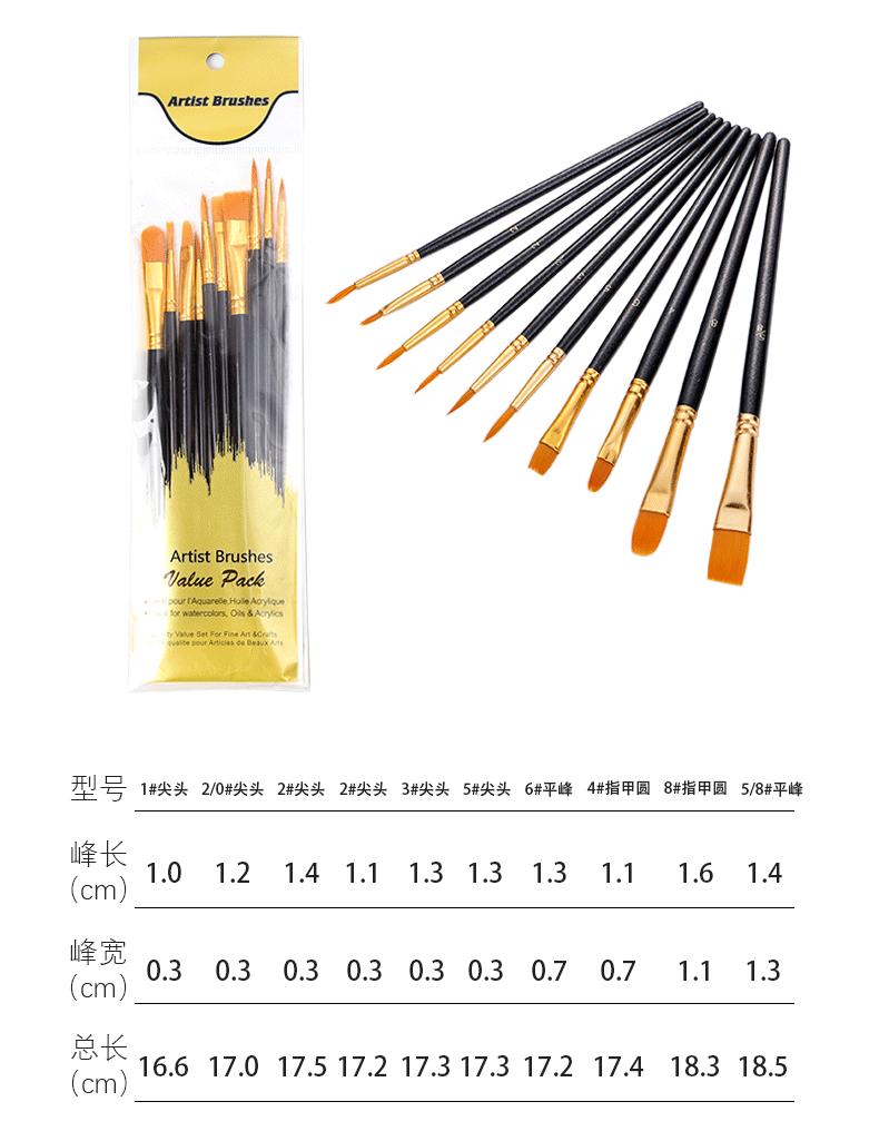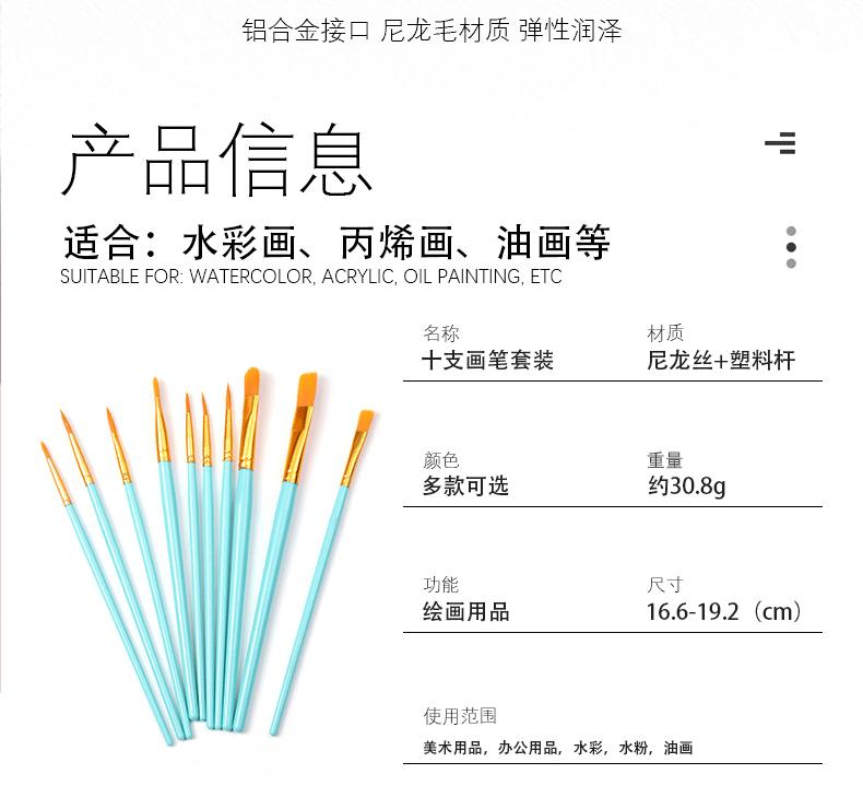 Pincel de nailon para pintura al óleo, gouache y acrílico para manualidades infantiles, de Amazon, 10 unidades, de varilla larga de plástico, para traje.