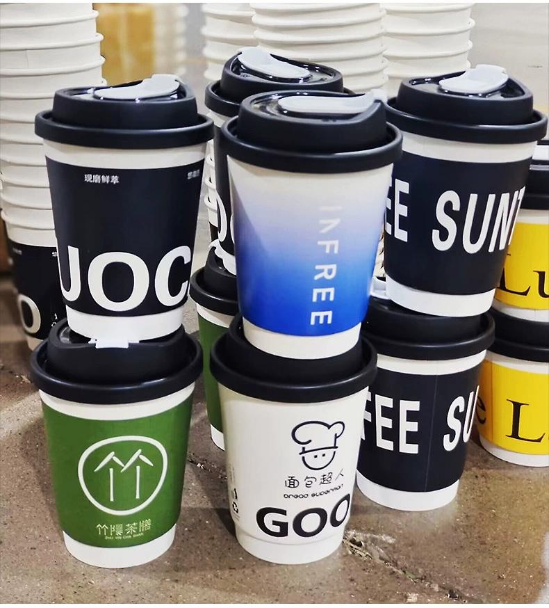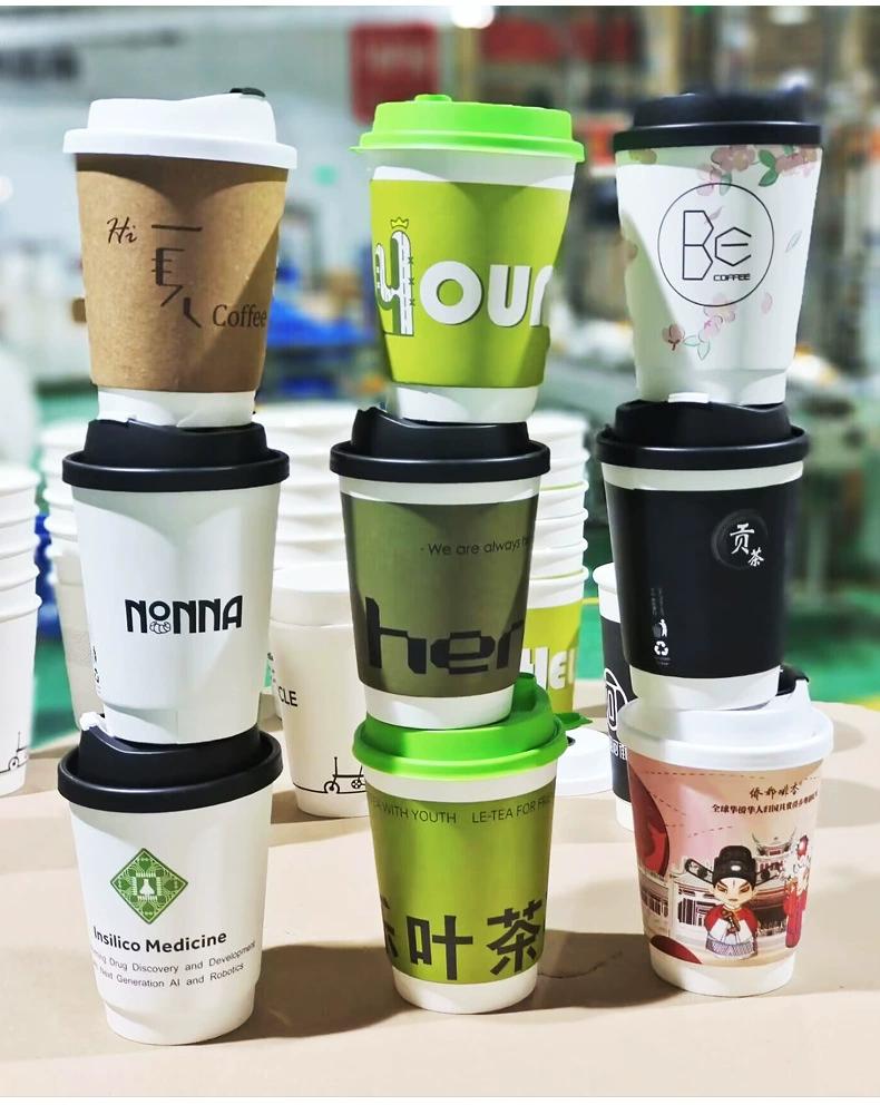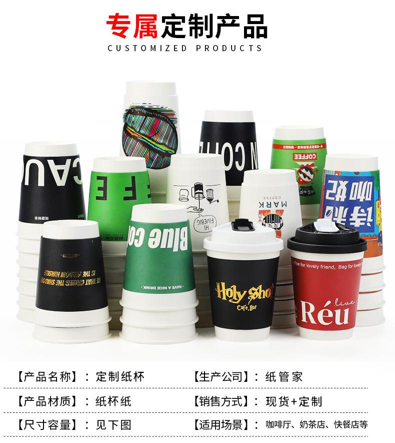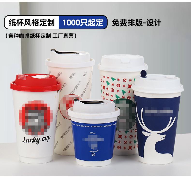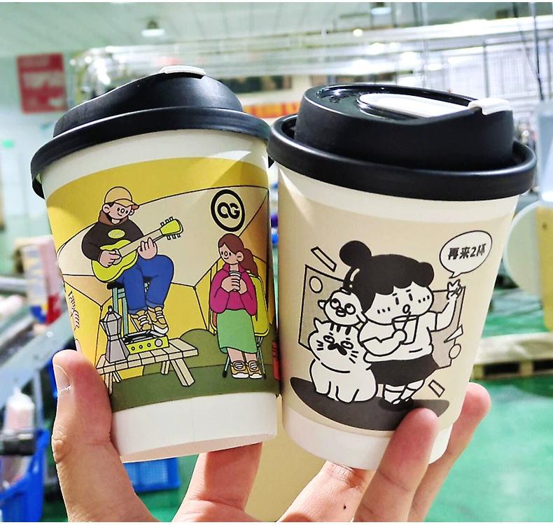 Vaso de papel para café con tapa engrosada, caja completa, venta al por mayor, vaso de papel desechable, vaso de té con leche, vaso de papel hueco, logotipo impreso personalizado