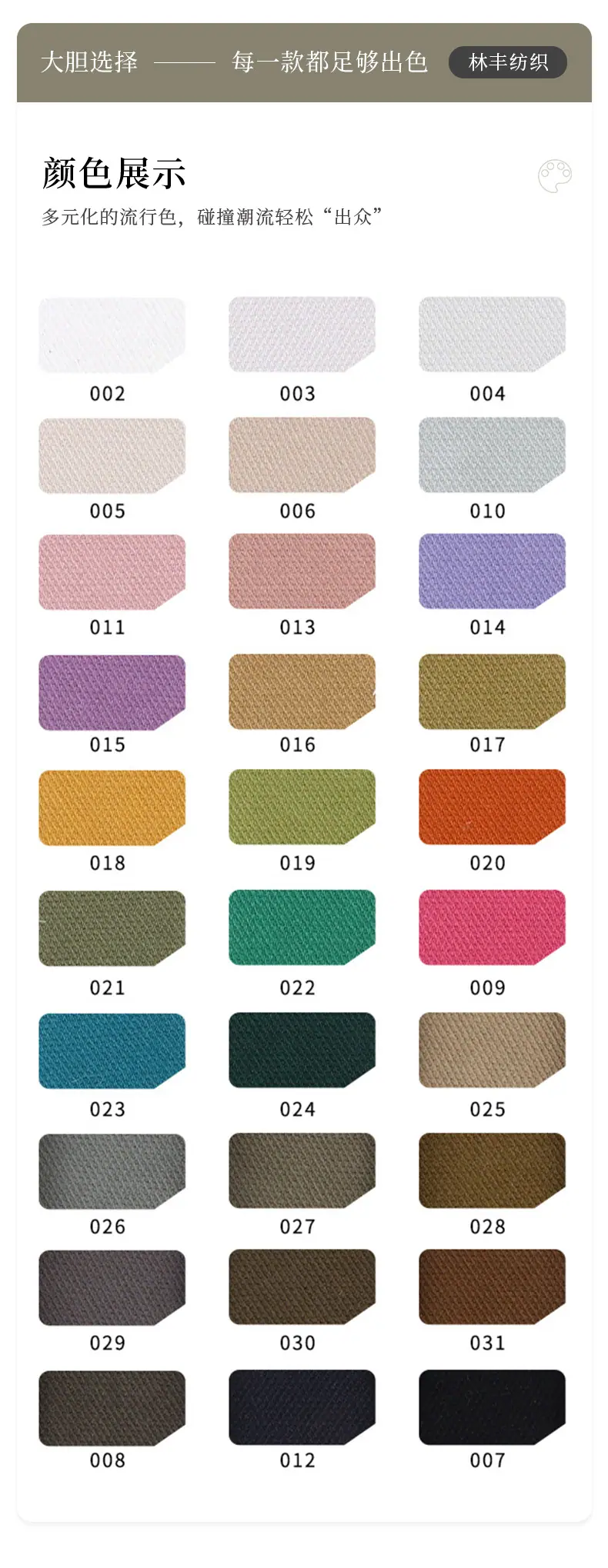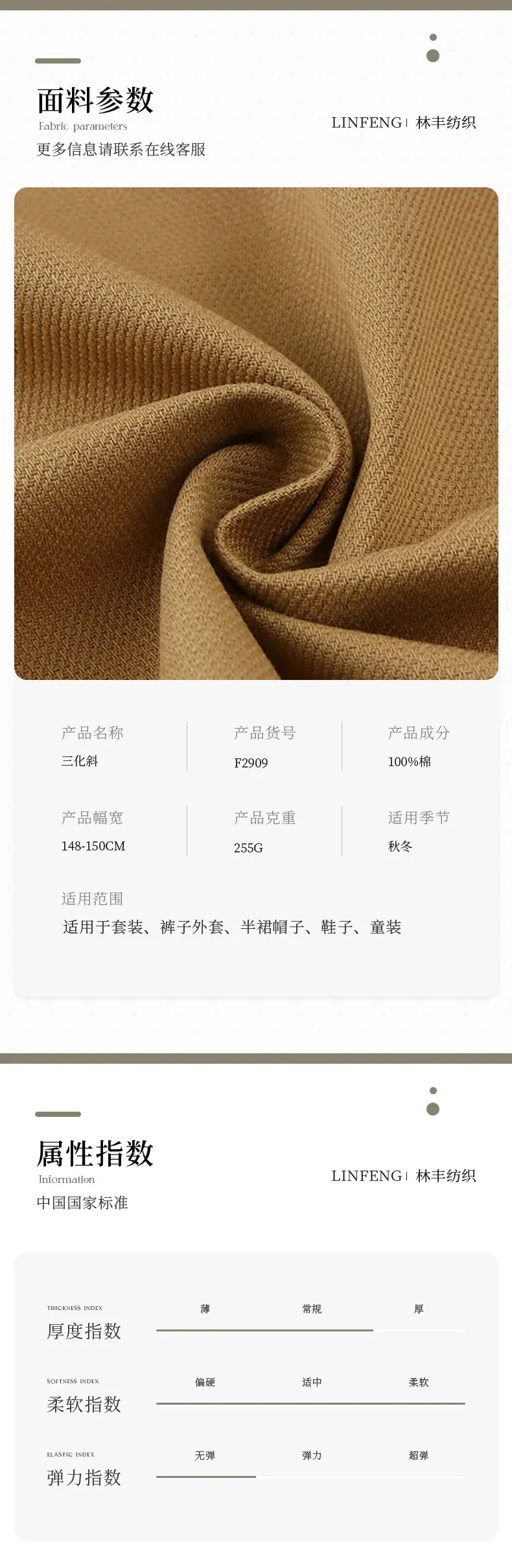 En stock, 255 g, tela de sarga gruesa de algodón lavado oblicuo Sanhua para pantalones de traje de ropa infantil