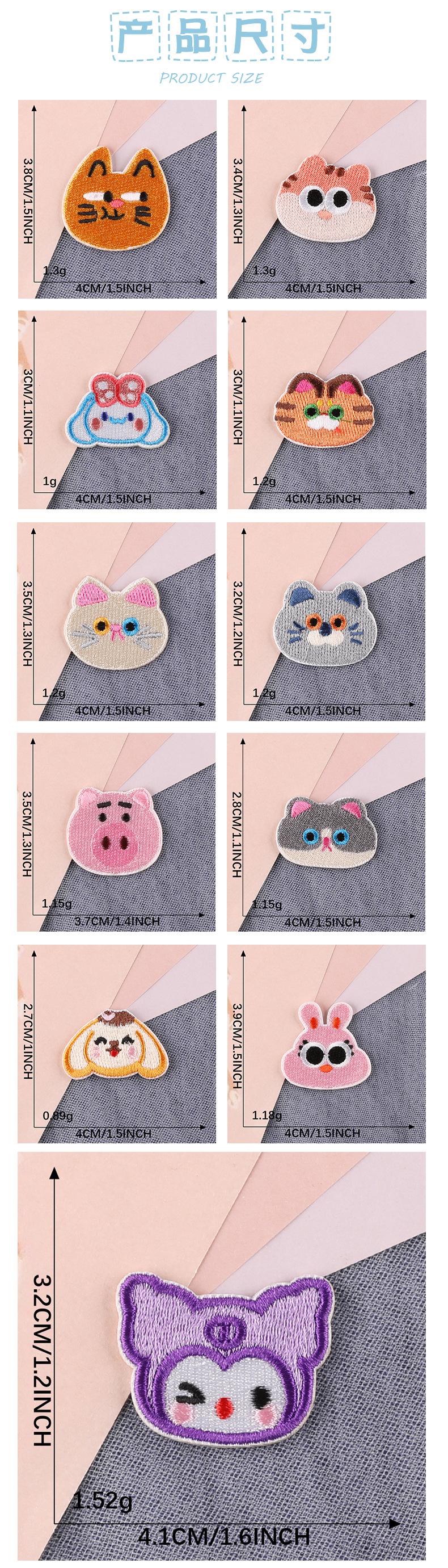 Etiqueta Bordada Autoadhesiva Cabeza de Animal de Dibujo Animado Original Accesorios de Ropa Insignia DIY Hecha a Mano Etiqueta de Tela Bordada Adhesivo de Tela
