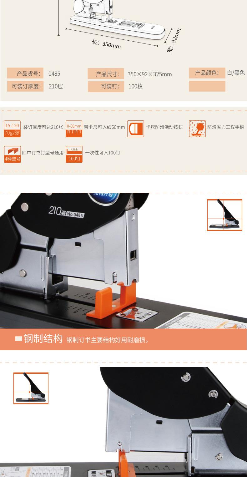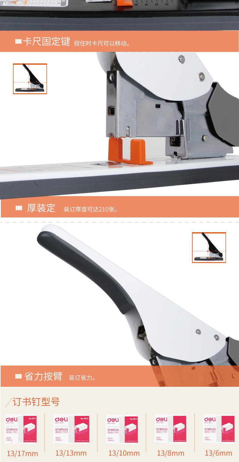 Grapadora gruesa Deli 0485, grapadora pesada, 210 páginas, grapadora grande, suministros de oficina