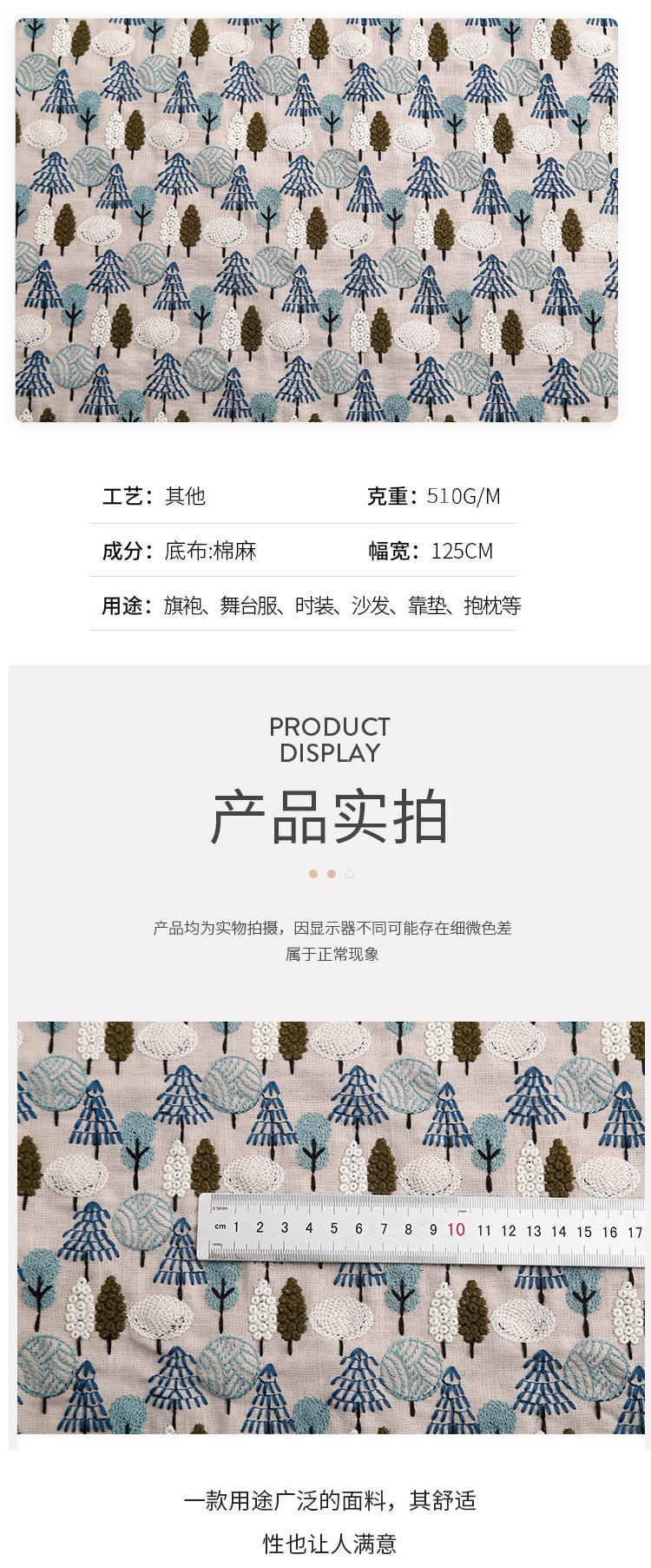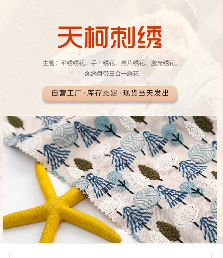 Fábrica en stock bordado bordado tela de algodón y lino tela base tela bordada vestido cheongsam tela para bolsa DIY