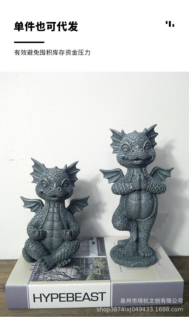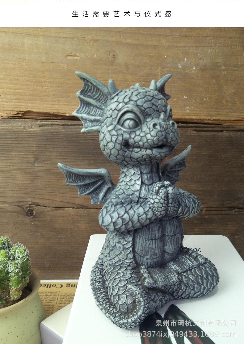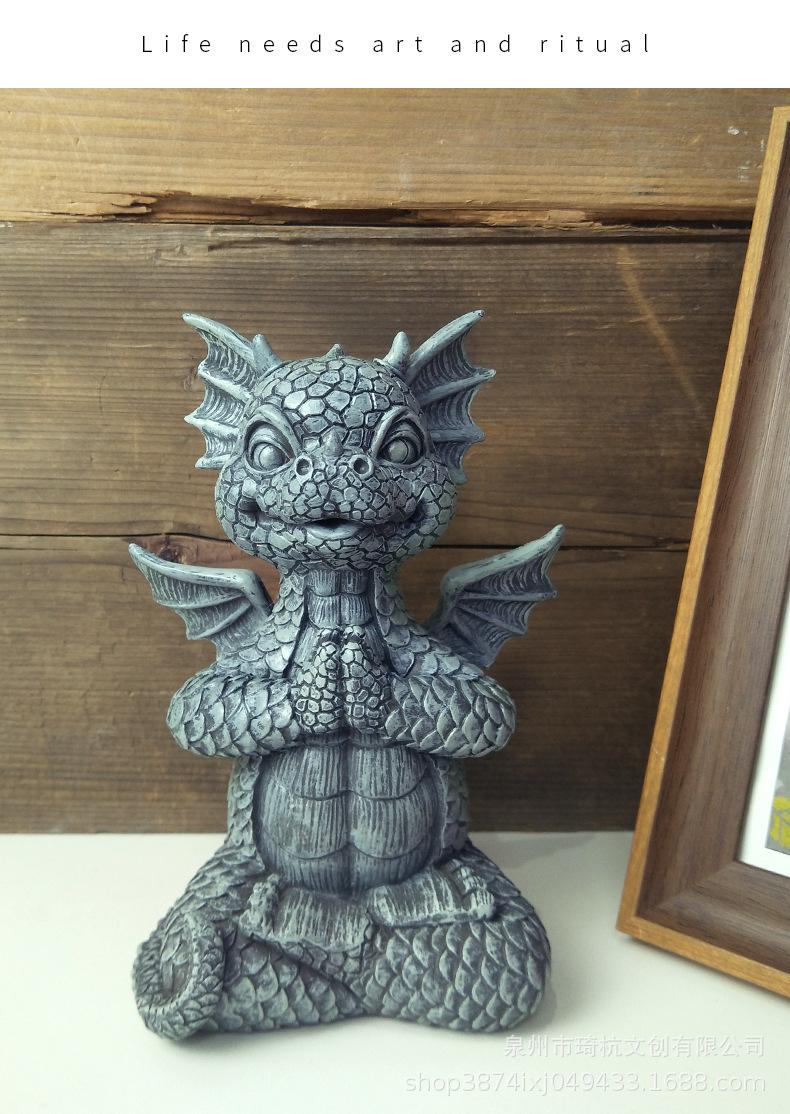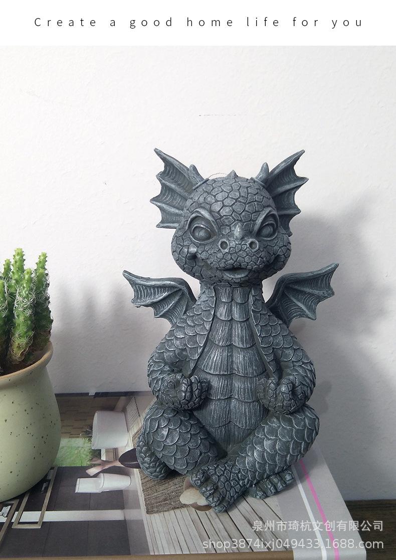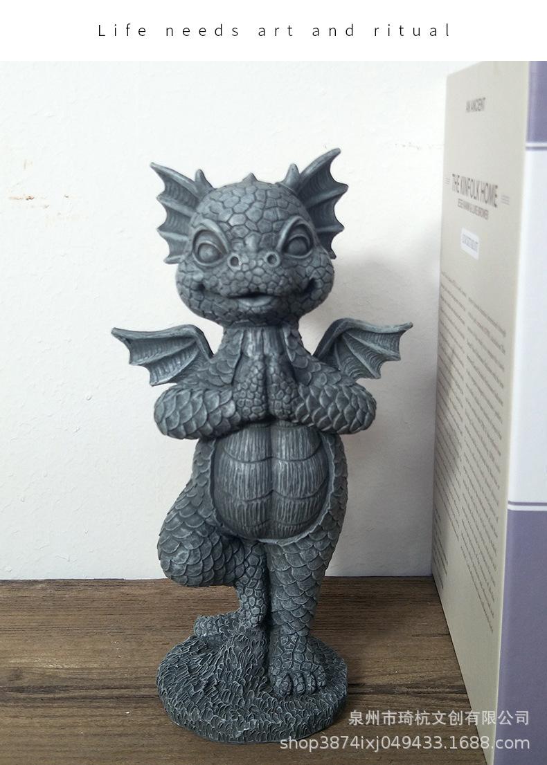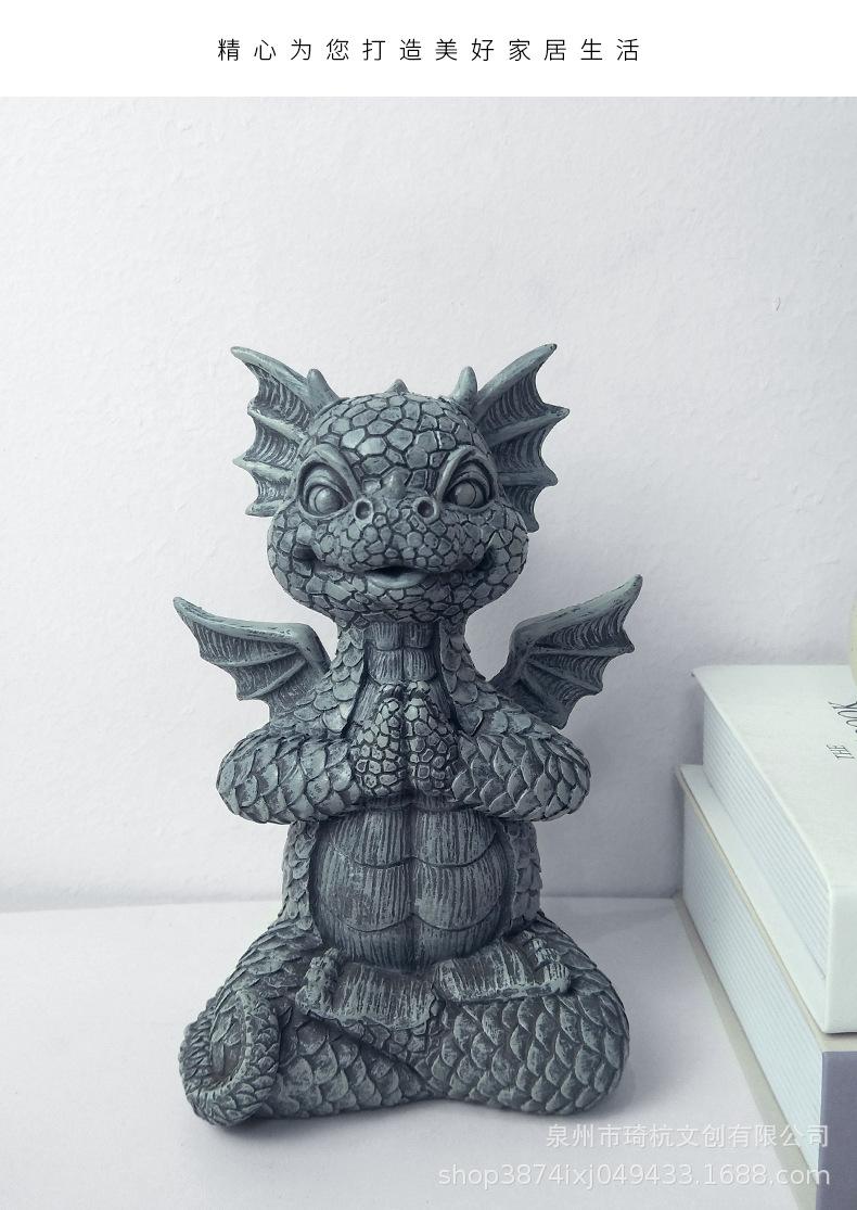 Estatua de resina de dragón de jardín transfronterizo, ideal para yoga, meditación, dinosaurio, decoración de escritorio para el hogar al aire libre.