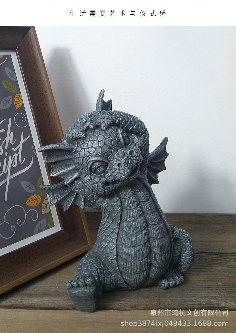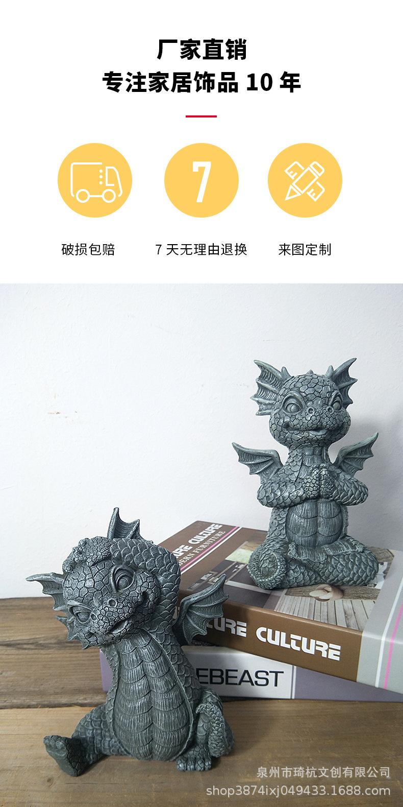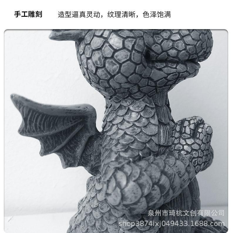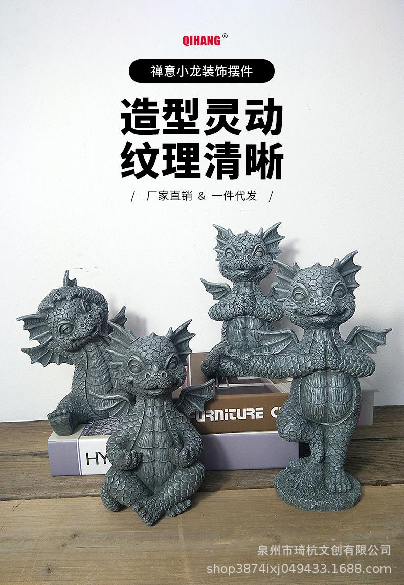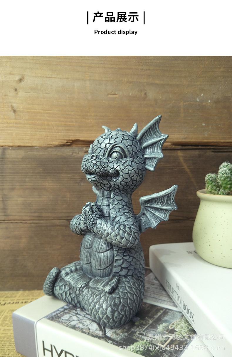 Estatua de resina de dragón de jardín transfronterizo, ideal para yoga, meditación, dinosaurio, decoración de escritorio para el hogar al aire libre.