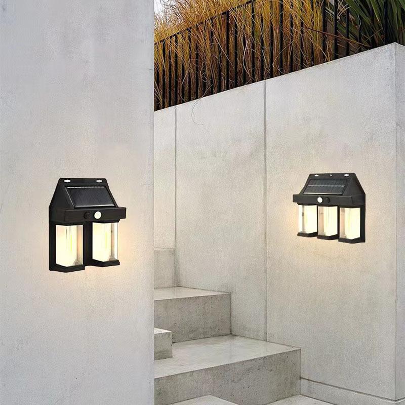 Luces solares para jardín al aire libre, luz oscura automática, inducción del cuerpo humano, villa, jardín, impermeable, luz cálida, lámpara de pared de ambiente