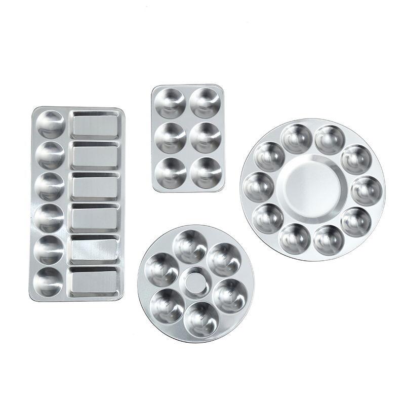 Paleta de acuarela de metal transfronteriza pintada a mano con 10 agujeros, redonda, rectangular de aluminio.