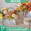 Bolso de mano de papel con remaches en blanco y negro, de alta gama, para regalo, creativo, para velas