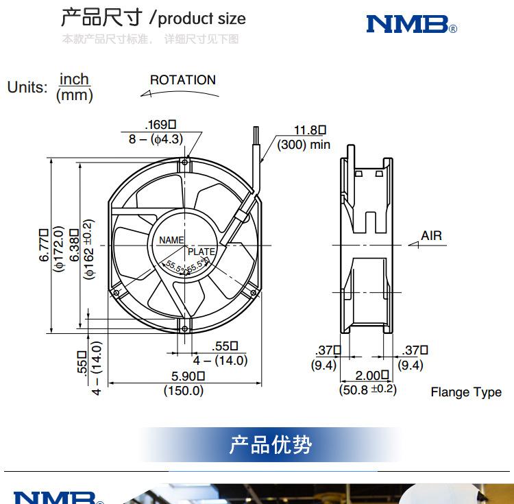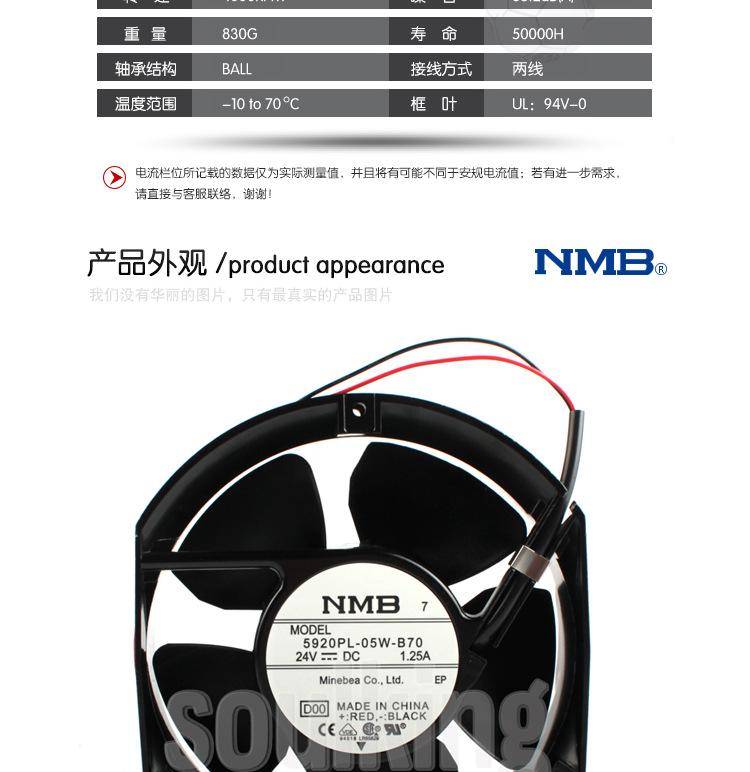 Ventilador general inversor de gran volumen de aire NMB Meibeiya 5920PL-05W-B70 de 24 V y 1,25 A