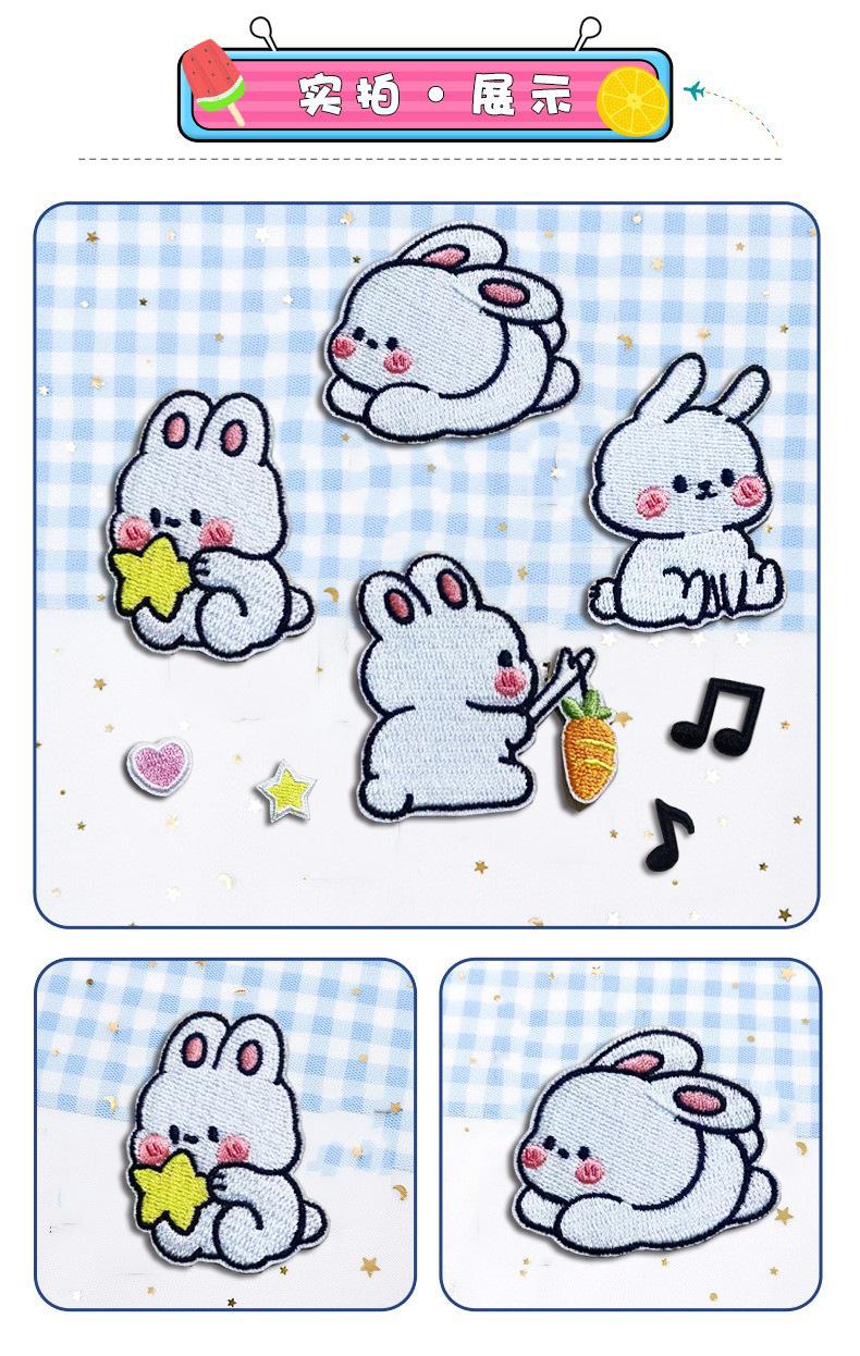 Pegatinas de tela con diseño de conejo de dibujos animados con logotipo bordado por computadora, lindas pegatinas de bordado autoadhesivas, accesorios de ropa DIY, pegatinas de parche para chaqueta de plumas