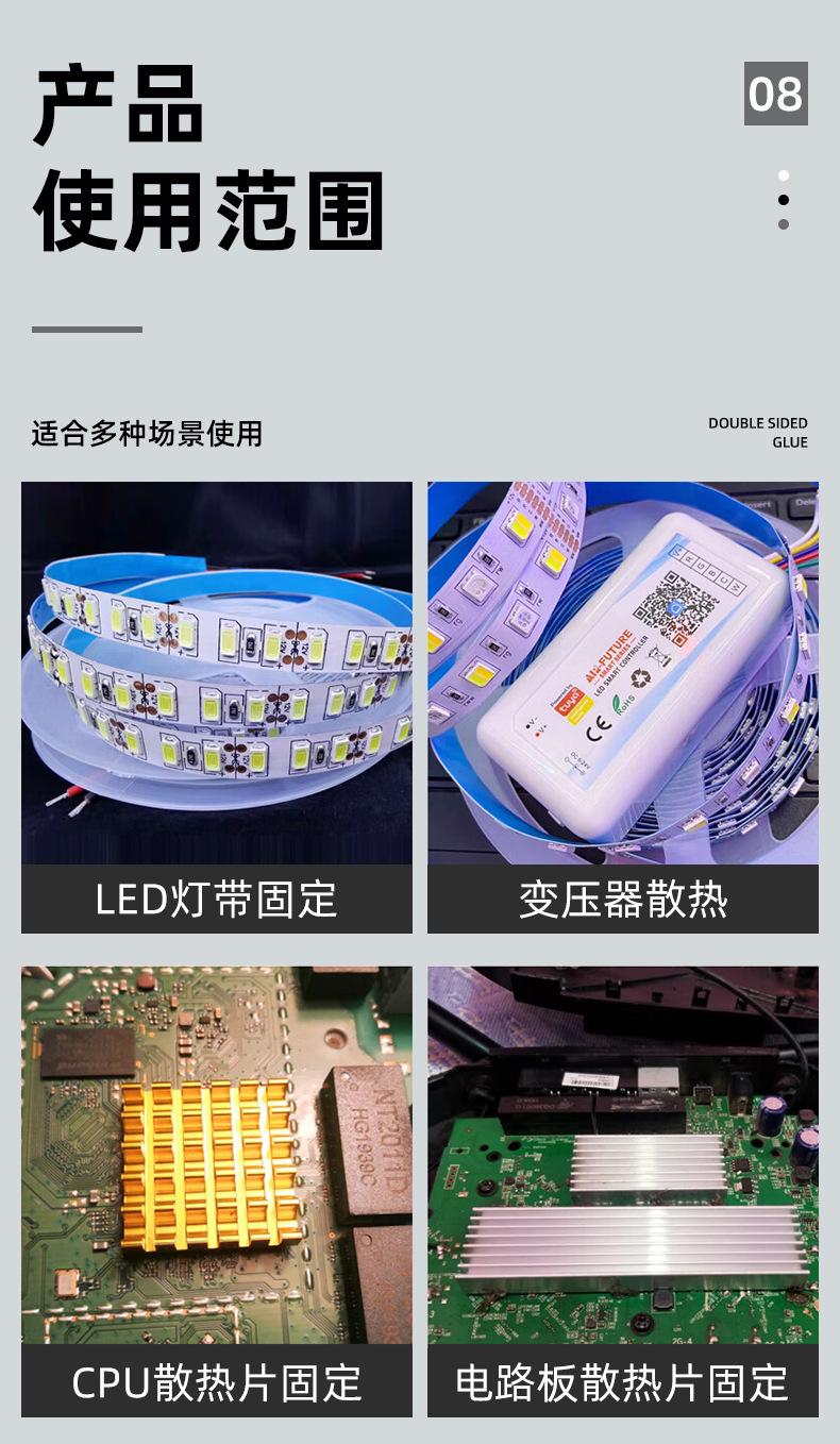 Cinta adhesiva de doble cara de silicona conductora térmica de alta temperatura con sustrato de aluminio de 0,15 mm de espesor y barra de luz LED azul y blanca de Jincheng.