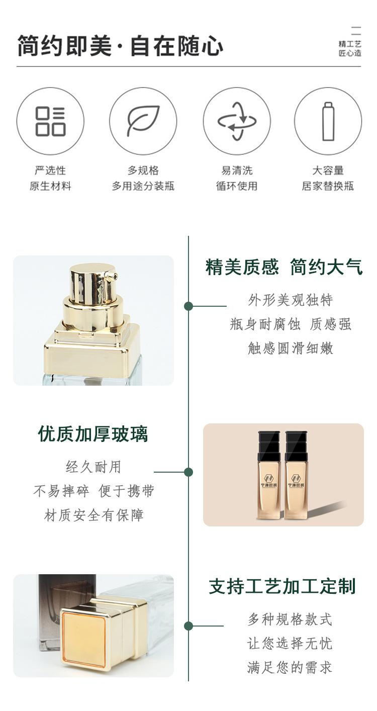 Cosméticos Nueva Base Líquida, Crema Aislante, Crema Solar, Líquido Esencia, Leche Esencia, Botella Dispensadora de Vidrio, Botella Cuadrada