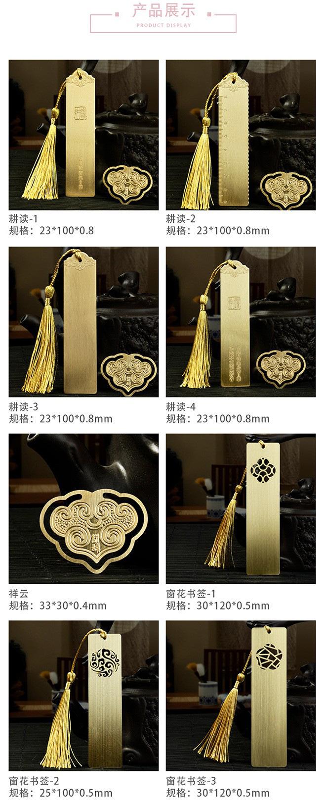 Marcapáginas de metal de latón de estilo chino, juego de marcapáginas de arado y lectura, regalo para estudiantes de la temporada de graduación de Wenchuang