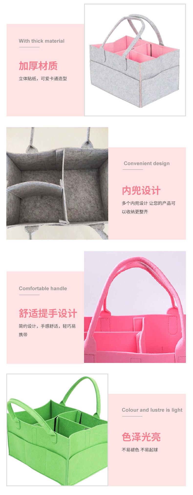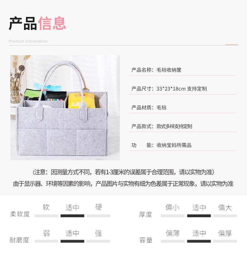 Bolsa de pañales de fieltro portátil transfronteriza, bolsa de almacenamiento de pañales para bebés, bolsa de almacenamiento plegable para viajes al por mayor en casa